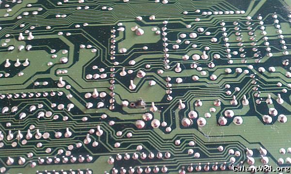 The 47uF capacitor shown in the upper left hand corner of the above picture will leak and cause a short on the trace in the picture below. This causes the ISC drivers to blow.