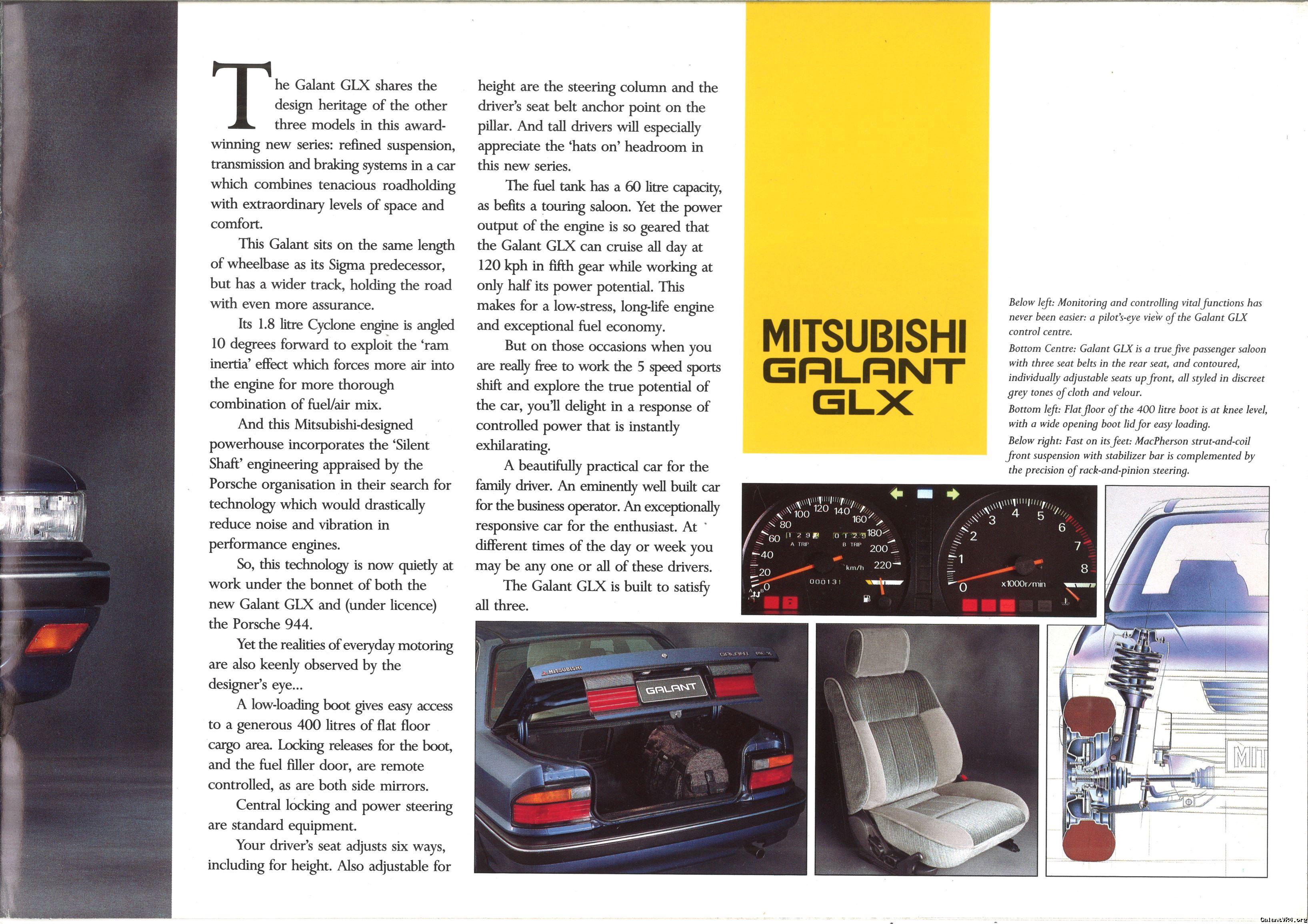 I had the Galant GLX as one of my first cars, it was fairly basic with the 4G37 carb engine and barely any electrics - but it still wasn't the base model. The GL had the gutless 1.6 4G32, no power steering, 4 speed transmission, tiny front brakes and no tacho!