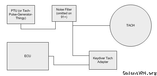 IS the signal output by the 1990 dedicated tach pulse thing DIFFERENT than the signal output by the 1991+ PTU? It looks like I could connect the white tech pulse wire in my 90 harness (pin 109) directly to the white wire on a 91+ PTU, remove the noise filter on the firewall, and a 91+ ecu would read it fine, because that's the way a 91+ harness would work.