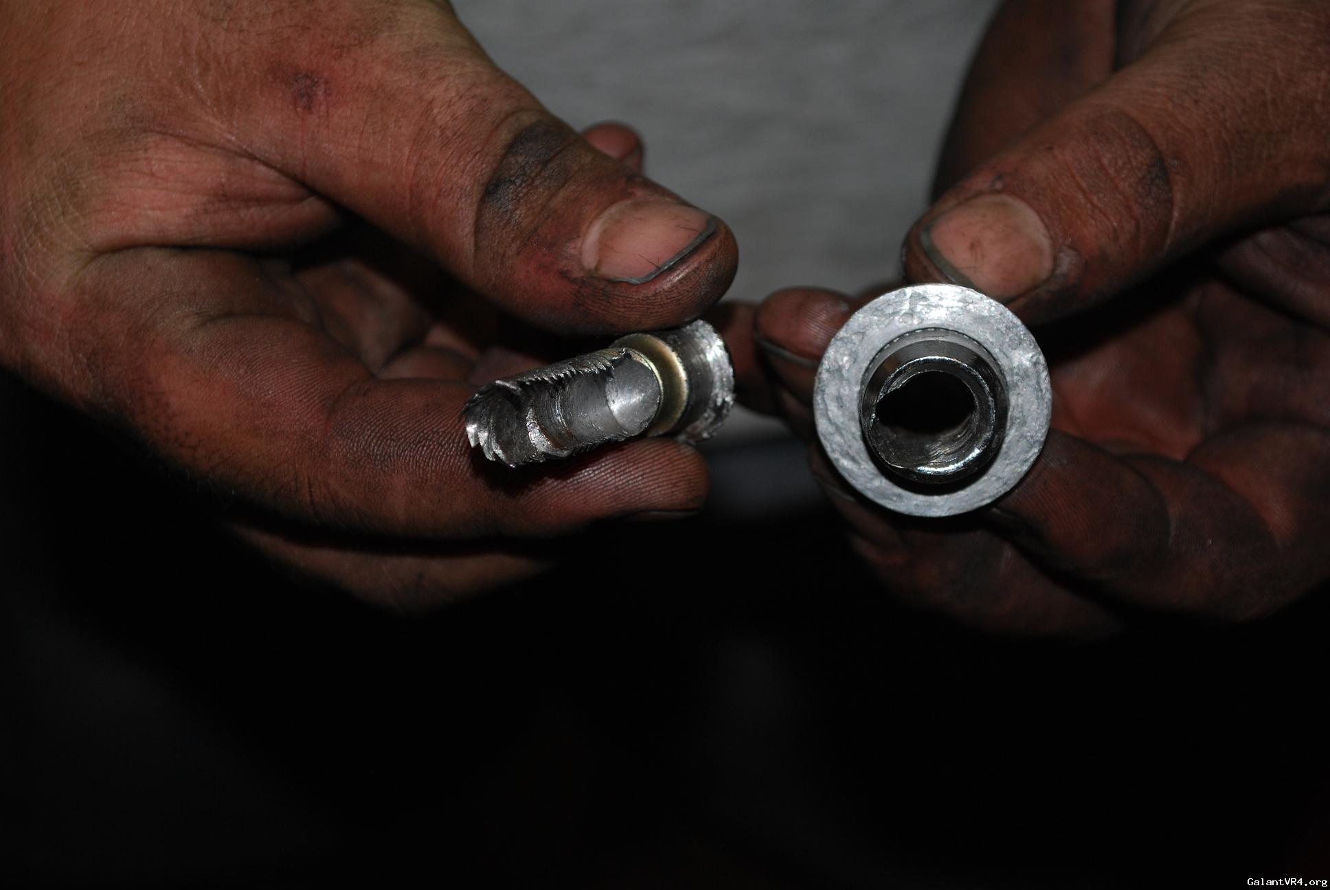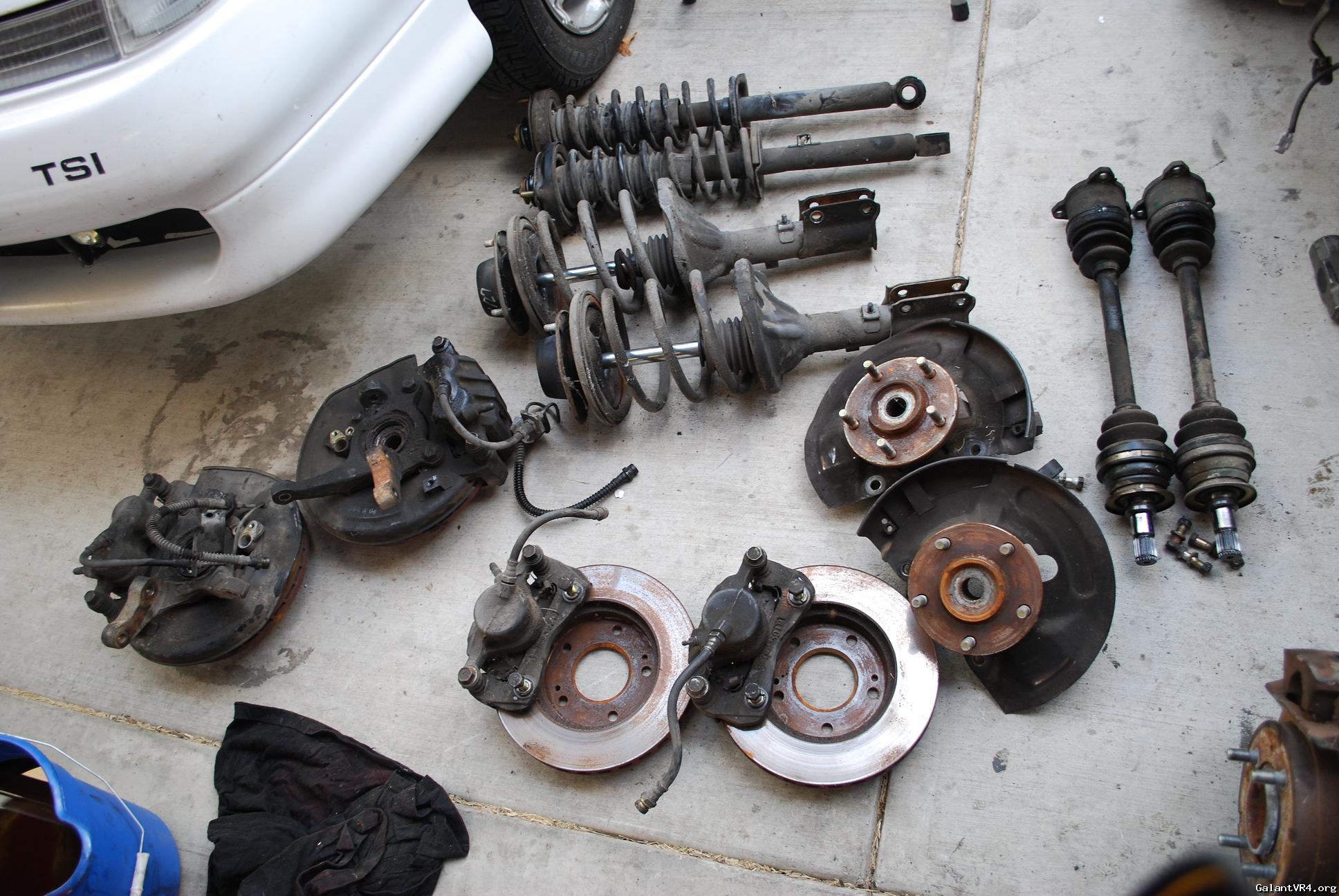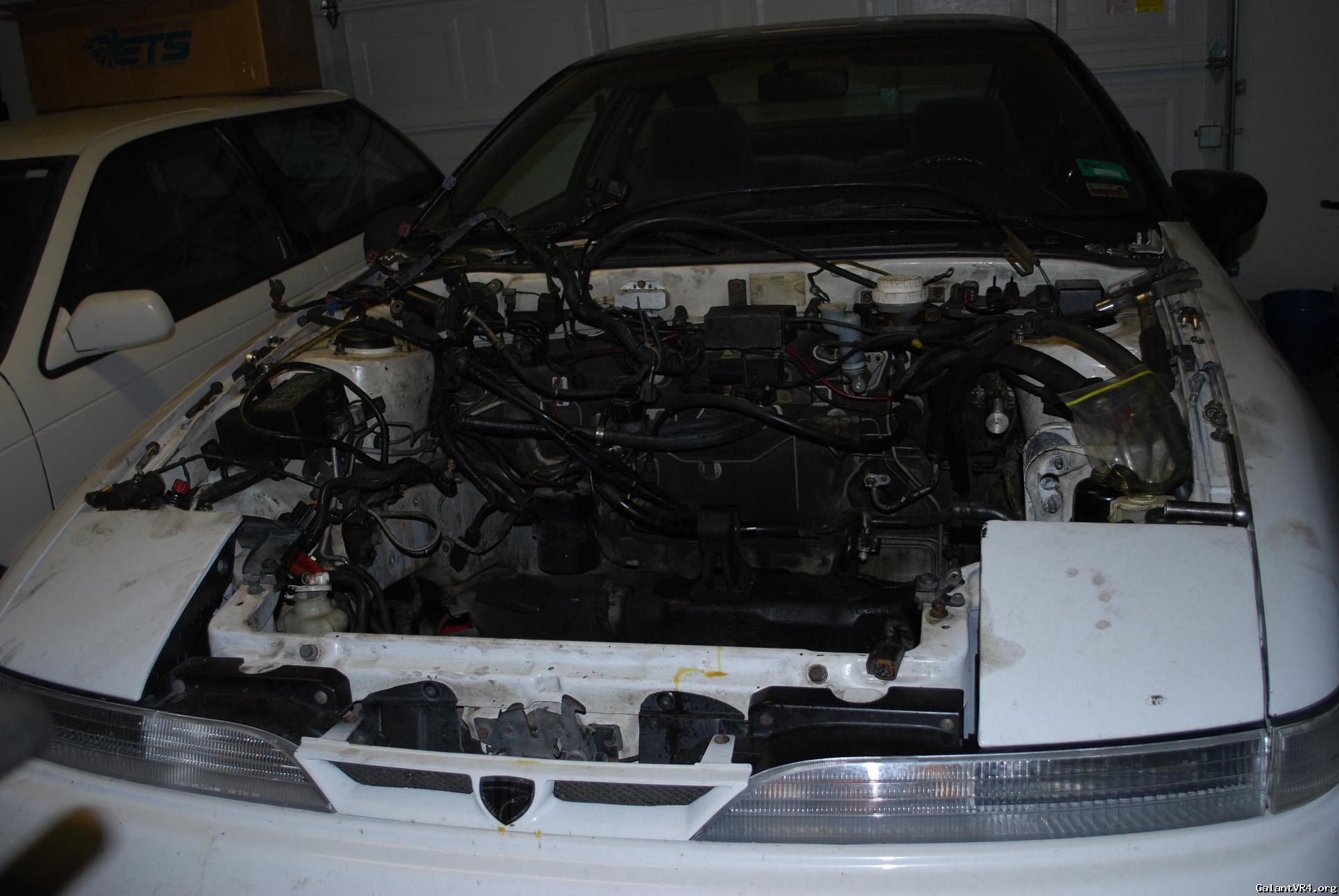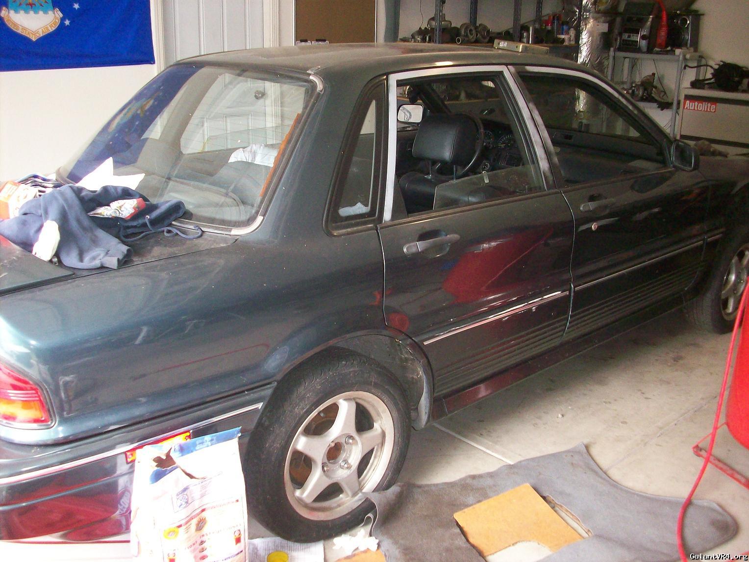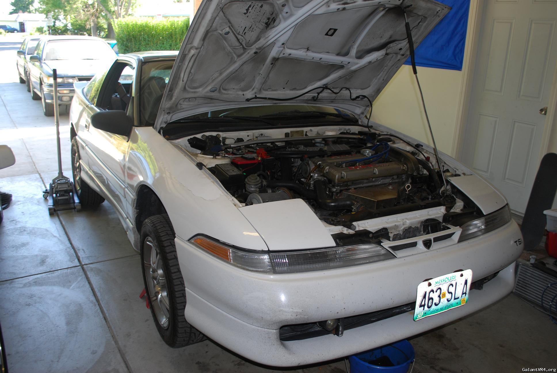 I decided to just go ahead and start a build thread for my first Galant VR4 #435. I am pretty new the board but I am trying to weasel my way in and get to meet some people. I was a big honda lover but crossed over to Mitsubishi about 2 years ago after buying a original 89 Colt GT. I picked the VR4 up almost 2 months ago from a the second owner of the car . The car suddenly quit running one day and the owner decided to store it for 6 years? /ubbthreads/images/graemlins/dunno.gif Owner said he though it was electrical related but I didn't really care being the car was only $900. Car has a clean title pretty good body besides some front end dents and clearcoat issues. It even came with the original matching key ring badge and key. I found the original Dealership window tag with the fuel ratings and price tag in the glove box with ful maintainance records. When I got the car home I pulled the timing belt cover off to find a snapped timing belt... So I pulled the motor within a few days to start a rebuild.