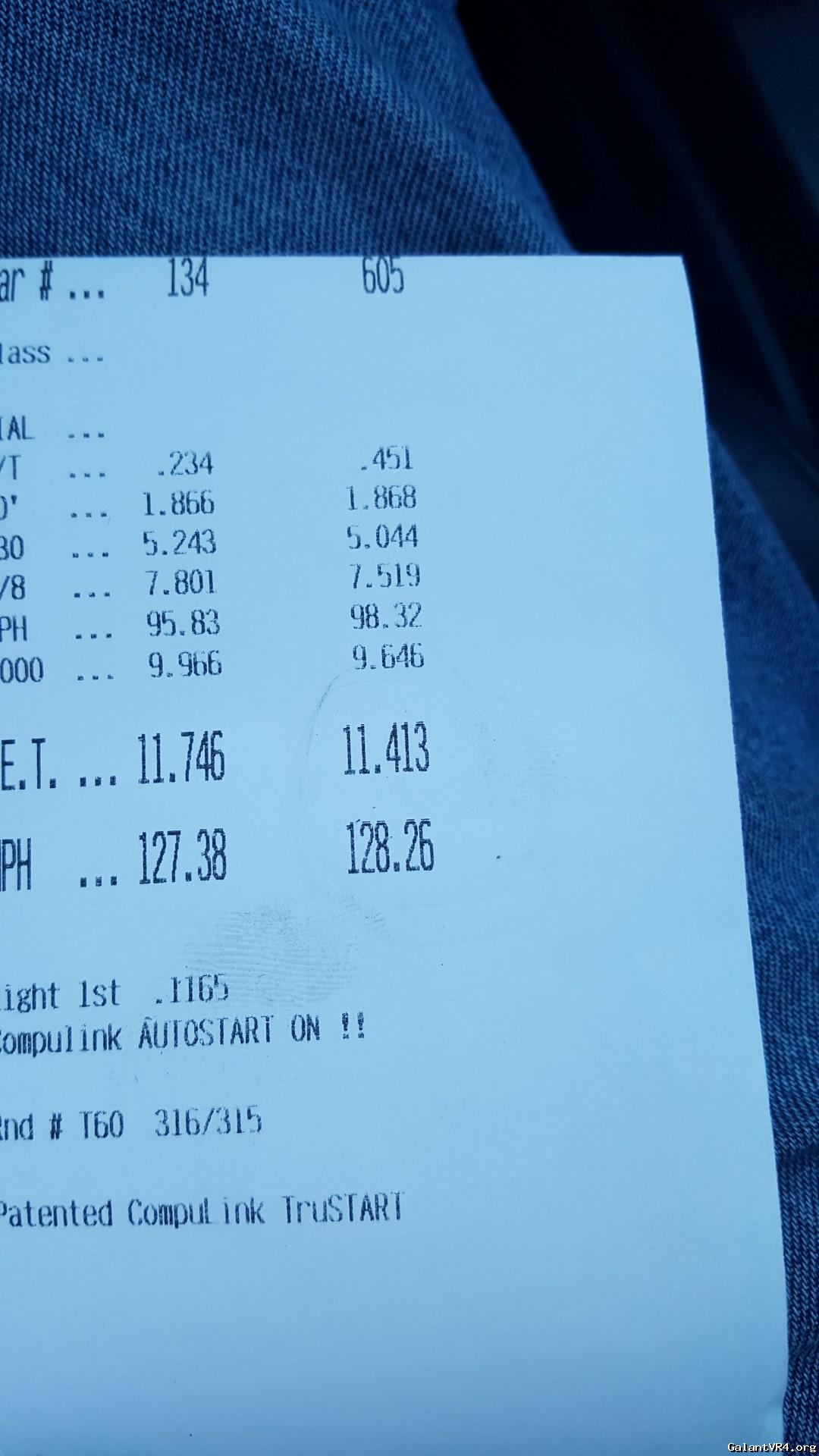 I had to check the printout. Twice. I couldn't believe i had run that well on my own street tune, nothing but pump gas, and my 6th pass after 10 years of not being to a track, in a new car with a totally new setup. I was ECSTATIC!