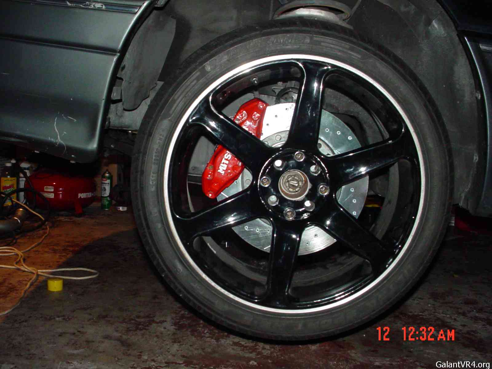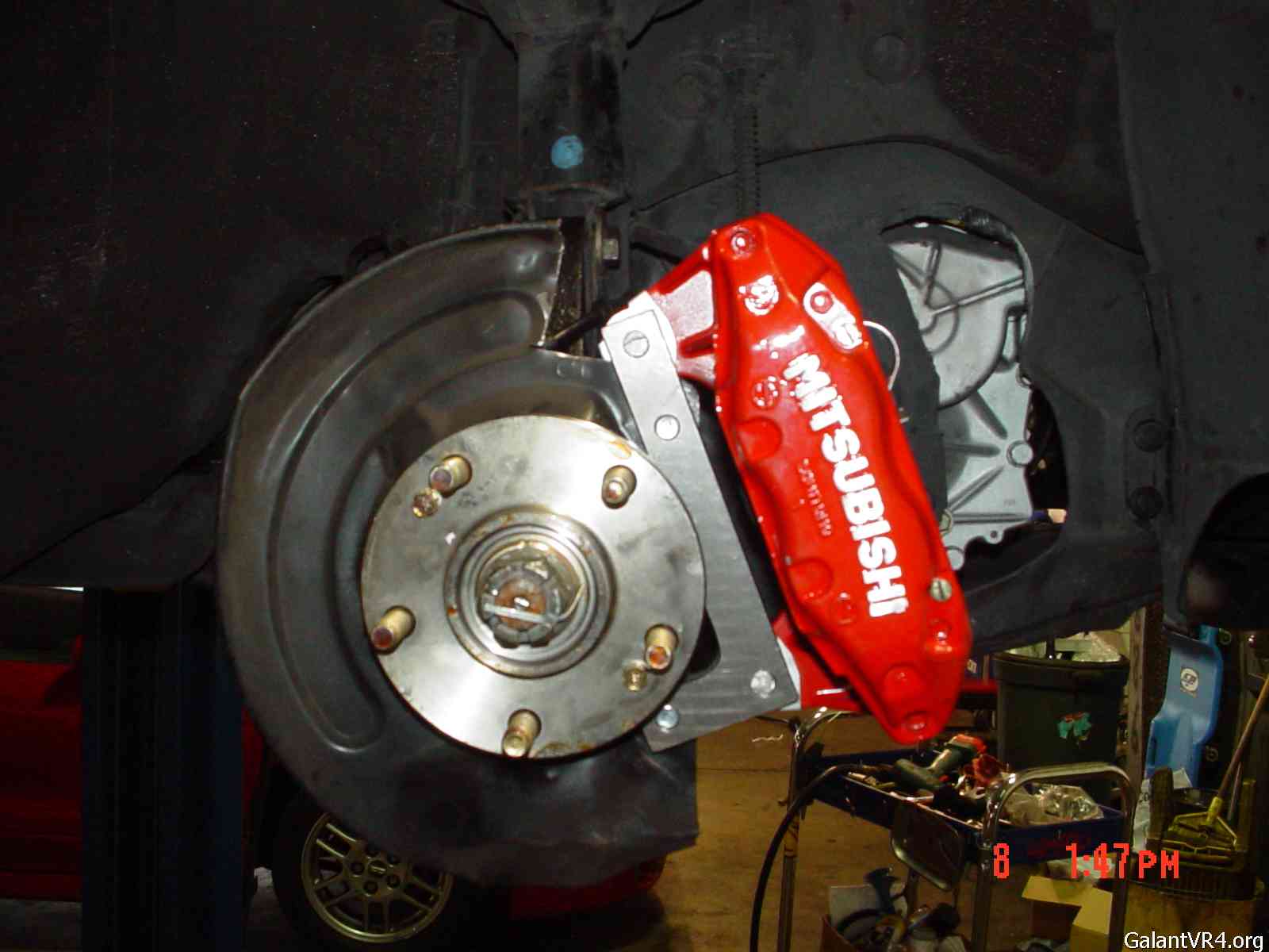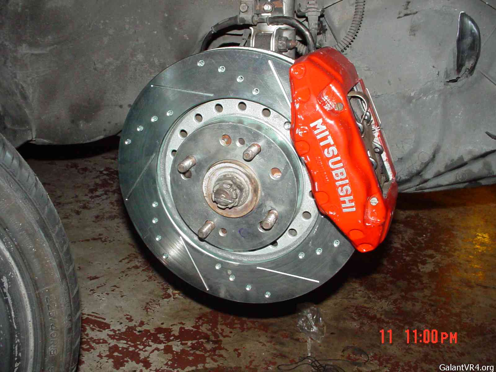 6) If you still have 4 lugs like I do, be prepared to line up the new 94-99 3kgt vr4 rotors with your stockers in order to re-drill them. You will need a 1/2" 'quality' bit & good drill for this. With the right bit, it doesn't take any time.