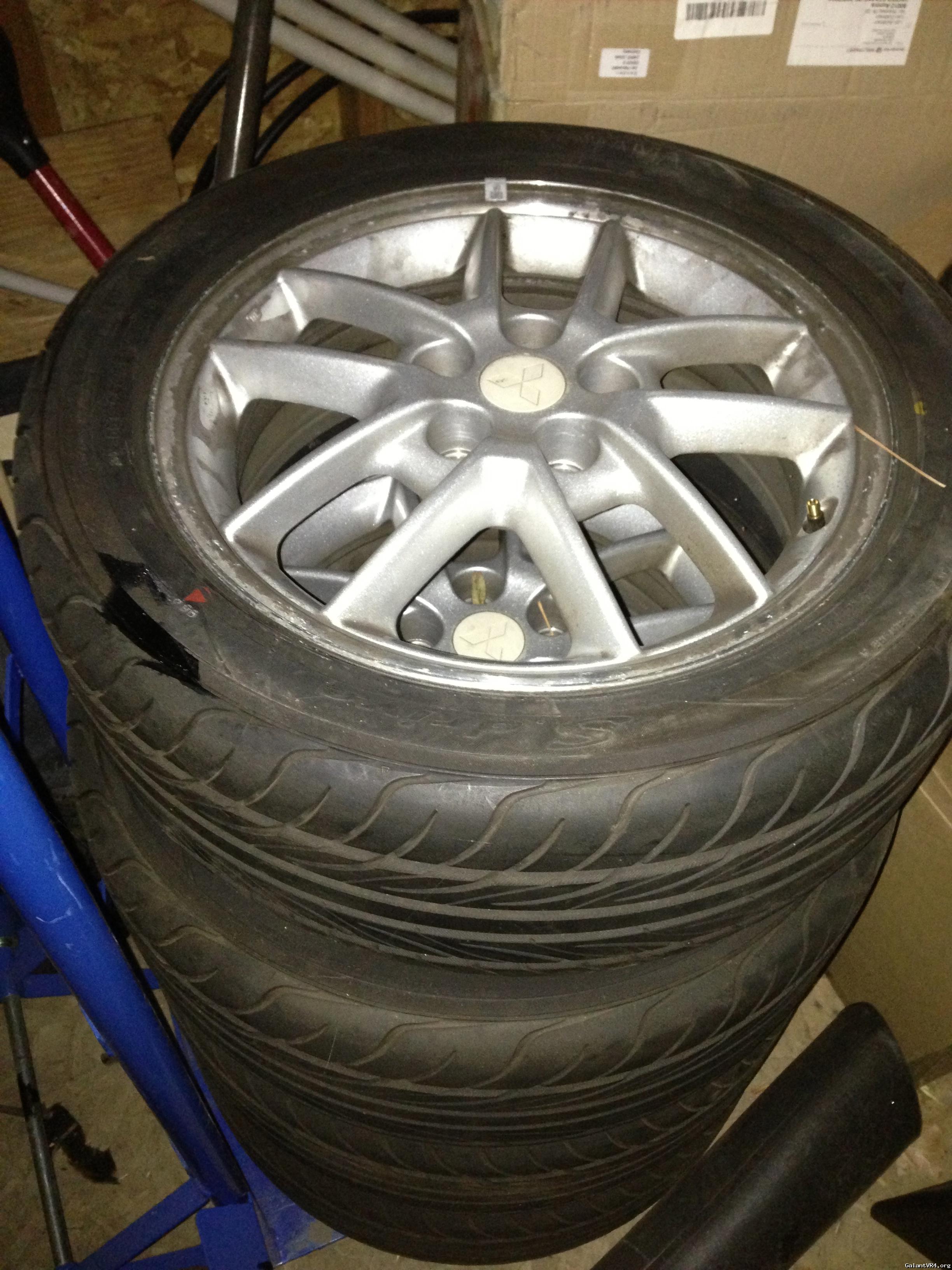 Eclipse GSX wheels with new Yokohama S-drive tires. Rims are in very good condition with no curb rash or damage. Tires were only used for about 500 miles. I paid 582.99 for the tires. I also have the receipt from Discount Tire for the free rotation and lifetime repairs.