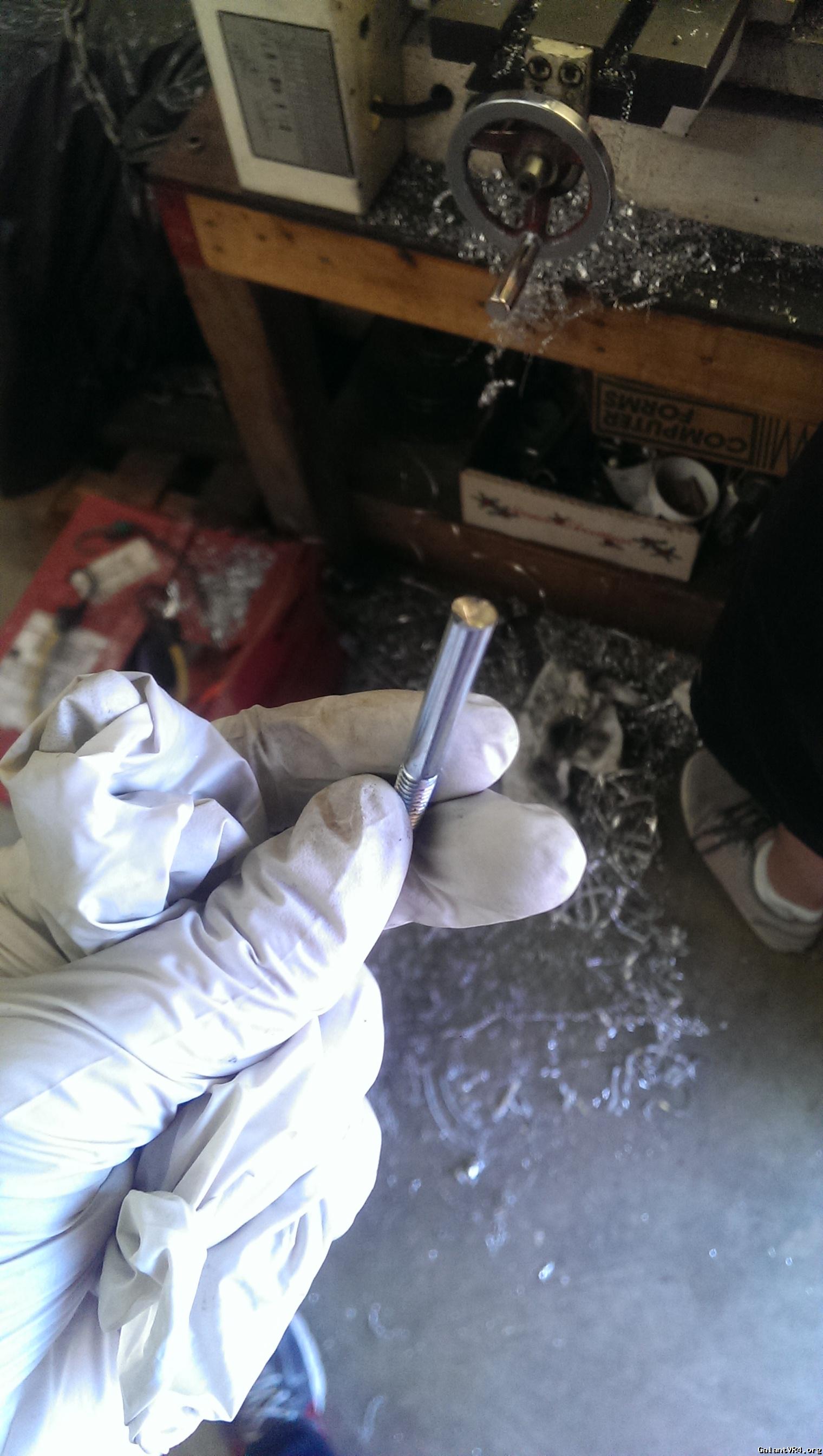 Evan has a lathe, which makes drilling out the cap bolt easy and precise. I've seen people with a vice and a hand drill and I have to imagine you break a few bits and a few bolts before getting it right.