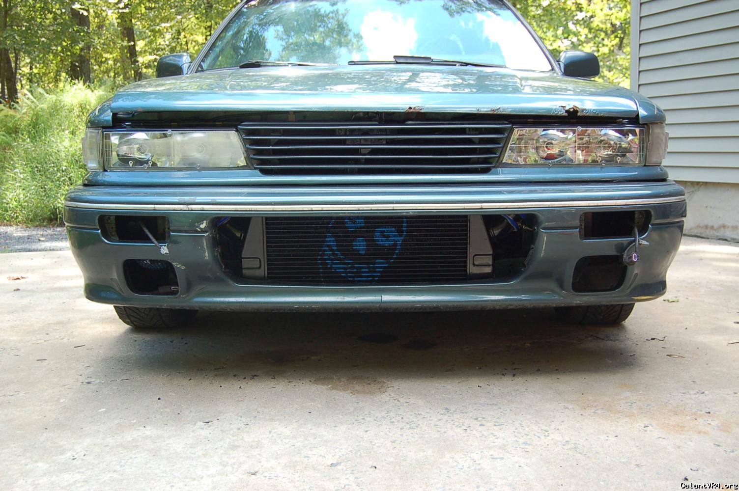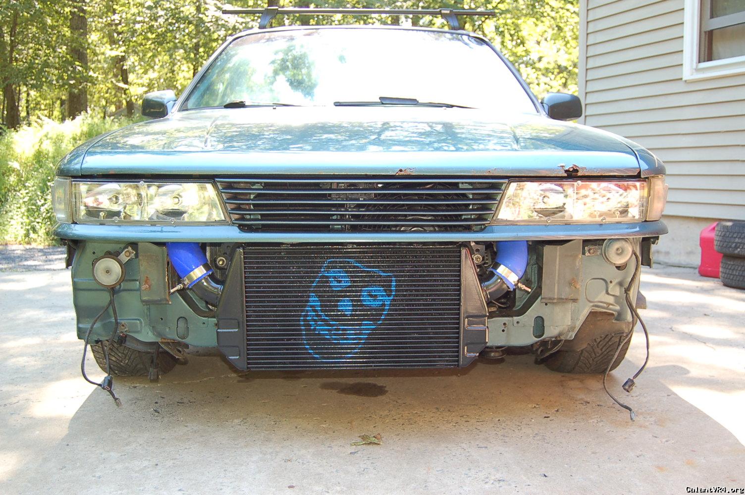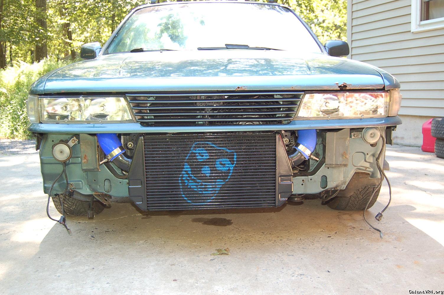 So i decided to find this vacuum leak. I hooked a boost leak tester up and it was coming from the BOV area. i decided that since have to fix that, that i would take all of the intercooler piping off, rescuer the intercooler core to the car, swapped the a/c fan for a slim fan, cut out the front bumper and support so you can see the intercooler and the misfits skull that i spray painted on there, do a bit of a wire tuck on the pass side, spray all the intercooler piping black, cruise control delete cable, swap some things on the 93 clear headlights and clean some other things in the engine bay. i will be taking pictures as i start to put it back together. really excited because it looks a lot cleaner already and will make things under the hood a bit more discrete.