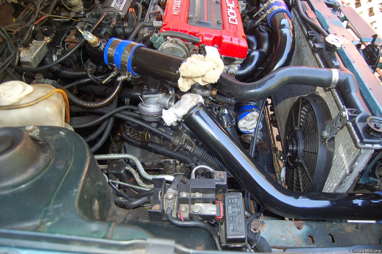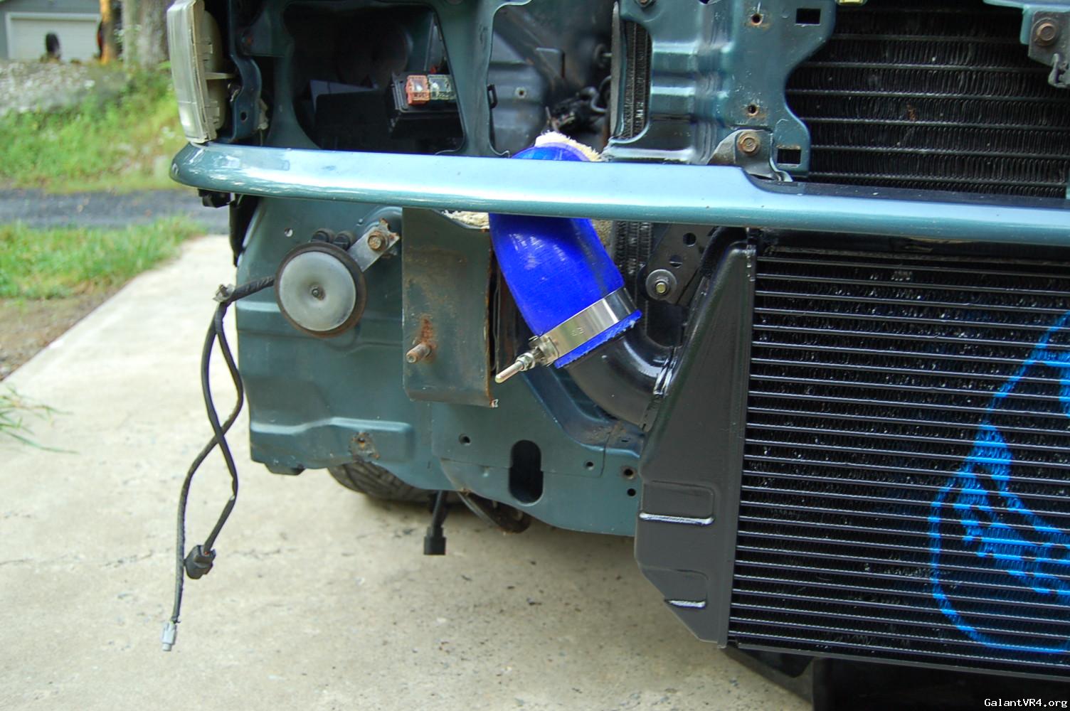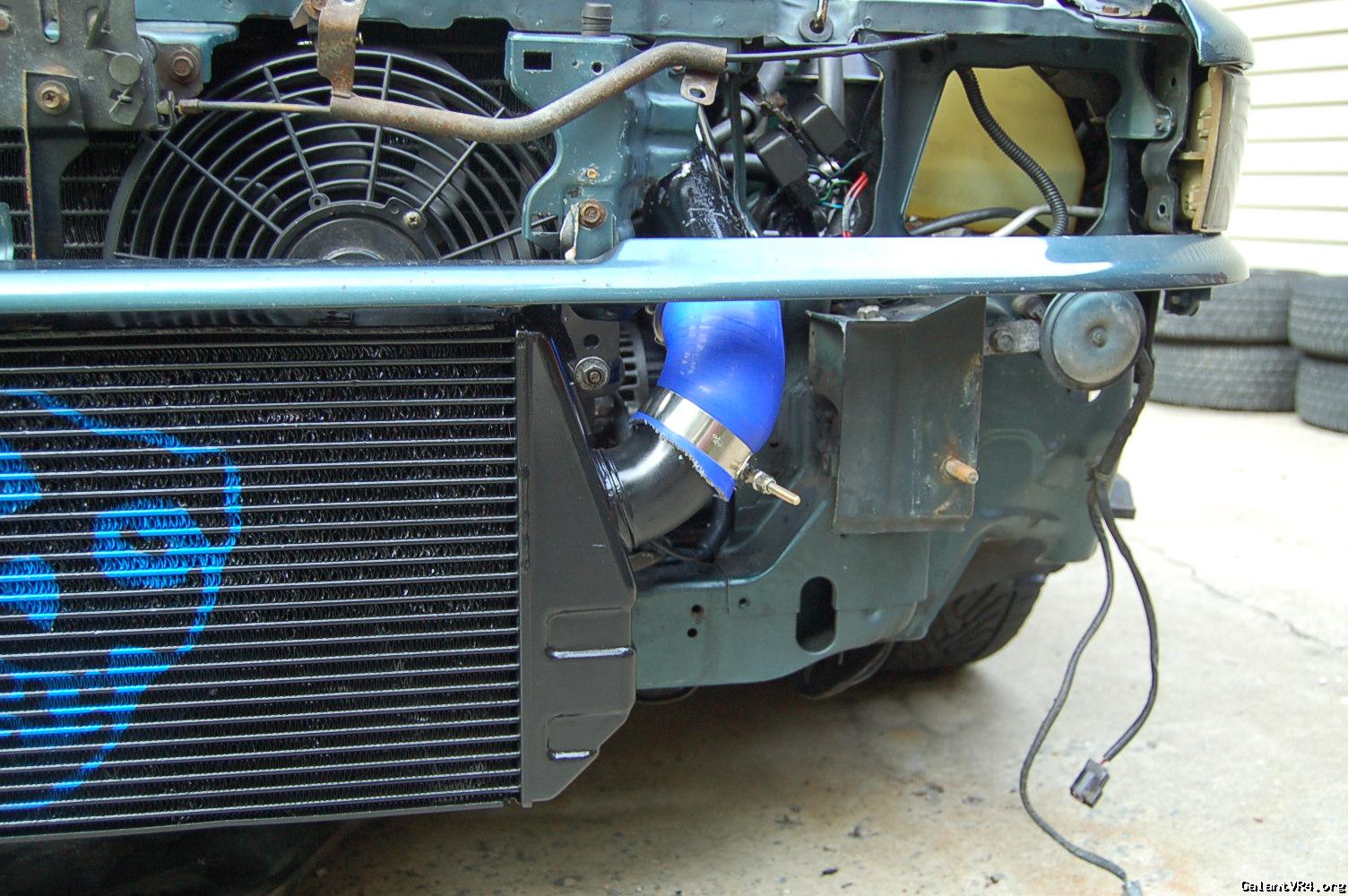 So i decided to find this vacuum leak. I hooked a boost leak tester up and it was coming from the BOV area. i decided that since have to fix that, that i would take all of the intercooler piping off, rescuer the intercooler core to the car, swapped the a/c fan for a slim fan, cut out the front bumper and support so you can see the intercooler and the misfits skull that i spray painted on there, do a bit of a wire tuck on the pass side, spray all the intercooler piping black, cruise control delete cable, swap some things on the 93 clear headlights and clean some other things in the engine bay. i will be taking pictures as i start to put it back together. really excited because it looks a lot cleaner already and will make things under the hood a bit more discrete.
