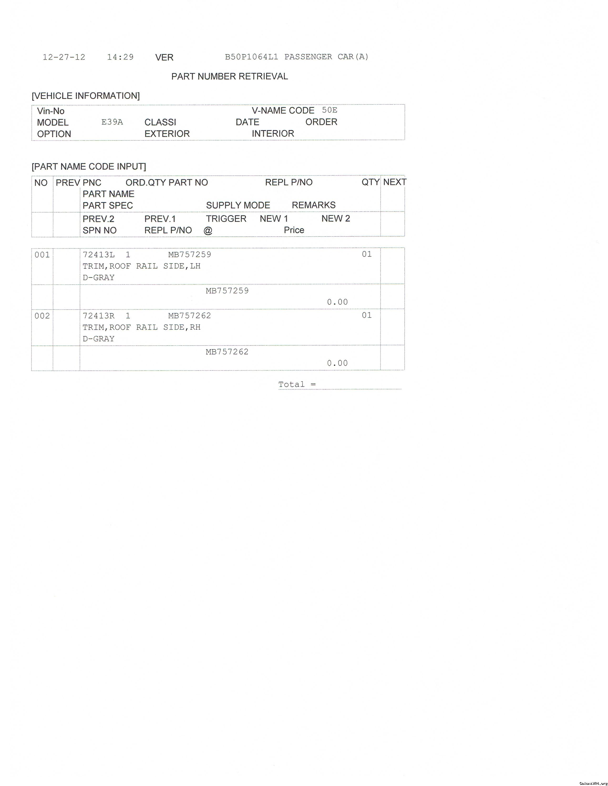 I'm in need of somebodies help who has access to CAPS. I shipped out 2 trim covers to a member here. During the shipment the both trims cover broke in half. I filed a damage claim with UPS, but they want proof of the value but the trim covers are NLA, therefore I can't find a MSRP on them. (I checked JNZ and local dealer). My paypal transaction is not good because the buyer didn't fill out the subject with the items he was paying for. By default PayPal has that line filled out with "You've got money."