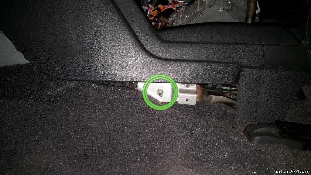 The easiest way to access everything is by sliding the seats all the way back. You will need to start by removing the two screws and the plastic push rivet on the side of the console (all of the bolt removals will be mirrored on the other side).