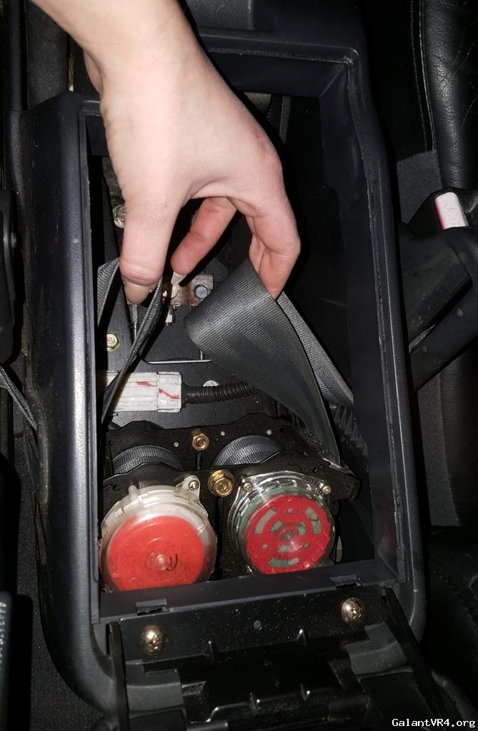 On to the seat belts...first take the liner basket out of the center console. Remove the bolts holding the seat belt guides in place.