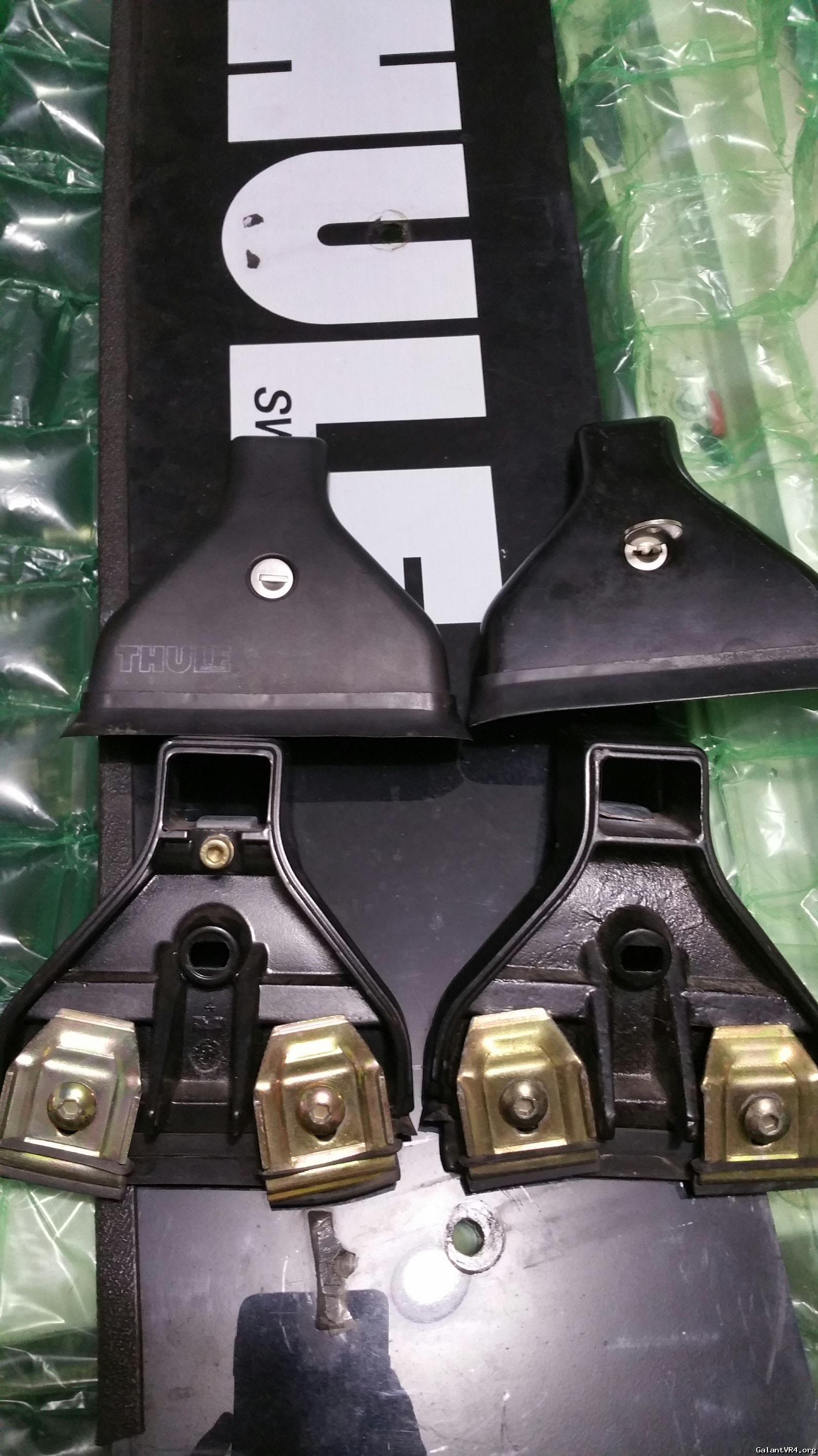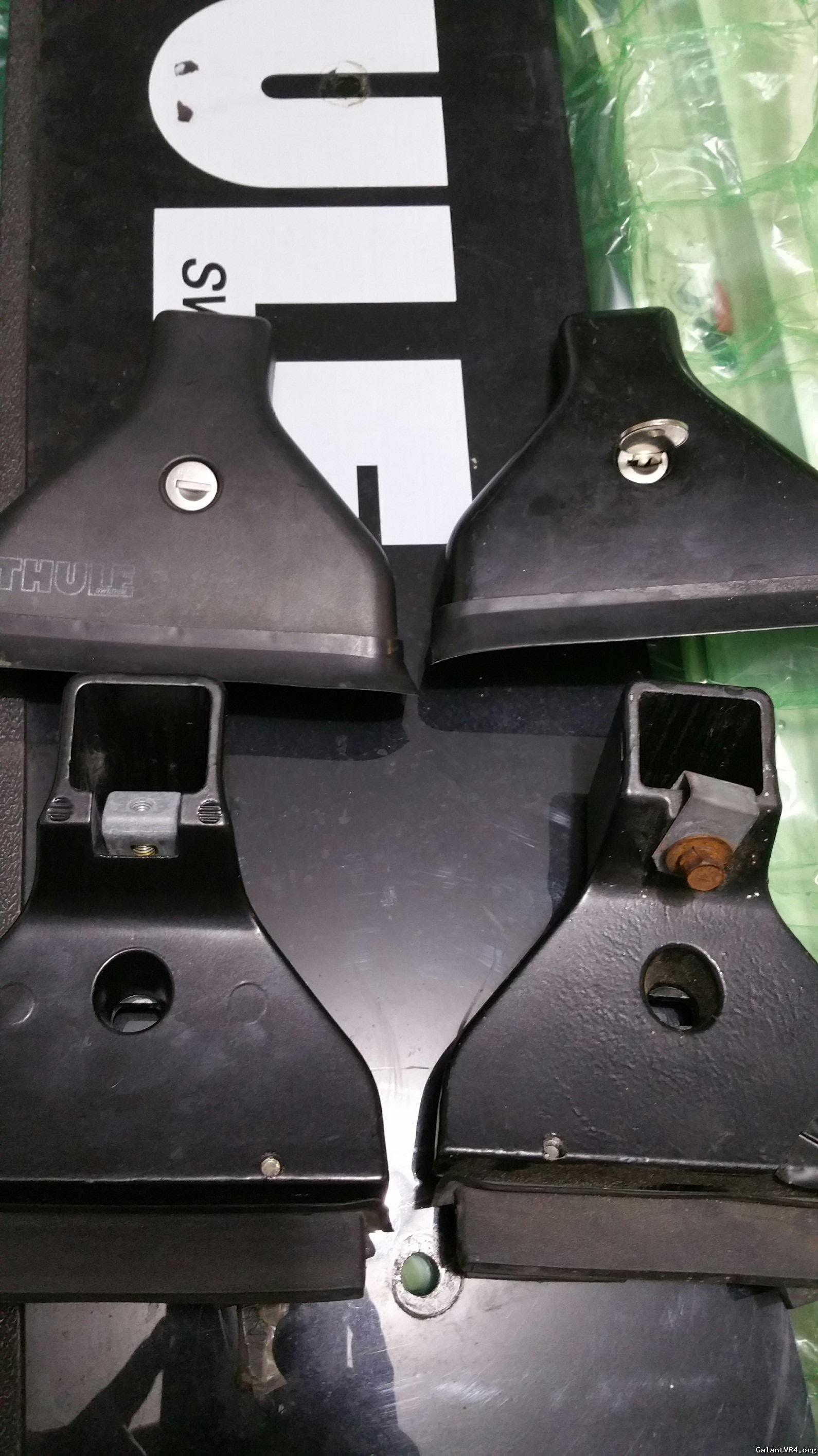 I have two racks that are both supposed to be oem Thule racks but there are a couple differences. One has plastic covers that say Thule on them . The other covers are aluminum or something . The set with the aluminum covers tighten to the bars with a knob/bolt and the plastic cover ones have a Allen that you tighten under the cover and it's hidden.here are a couple pics.