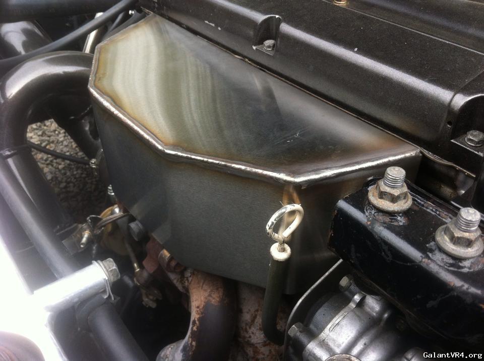 I apologize in advance if I'm whoring up your thread, but I wanted to post this up for comparison. I'm looking for a better way to make a new heat shield for my own car. I posted this in another thread, but here's the heat shield I fabbed up. Of note, my shield sits at an angle, whereas Evan's appears to sit more even with the radiator. I think that's the way I need to go next time.