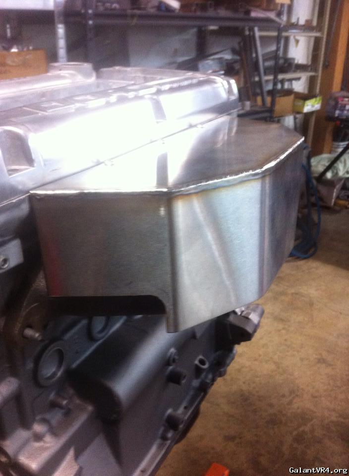 On the manifold; Evan's looks wayyyy better than the one I made. I had issues making a shield that covered the manifold, yet still cleared my J-pipe, radiator and driver side cooling fan. In the end, the only way I could fit mine was to remove the driver side cooling fan. This was mostly due to the angle the heat shield sat at, which made it protrude into the space that would normally be taken up by the fan.