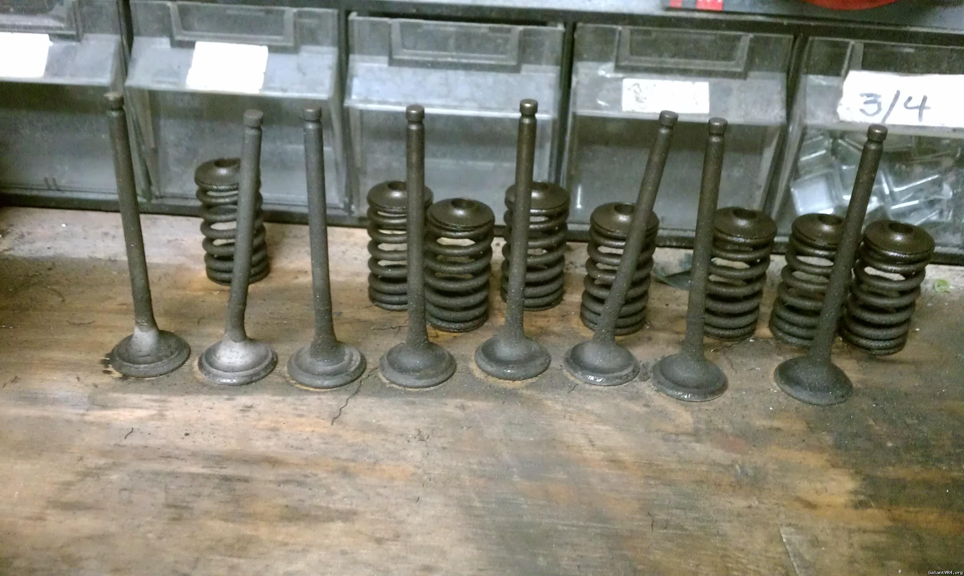 Got a chance to mess with the engine tonight. All 8 exhaust valves hit. 3 are bent pretty good. I have all new EVO stuff going in. I'm not thrilled about the piston tops. I'm going to clean them and see how they work. What do you guys think about the pistons? This is my fist "budget build". Normally I would just buy new pistons lol but those are not in the budget until 2015. Thanks for looking!