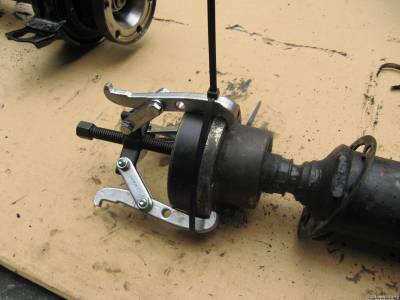 Or maybe a slidehammer (on an axle remover plate) with a few bolts threaded thru the outer cage may do the job. (Don't use the hardware from the shaft, it'll probably stretch/boogerfy the bolts.