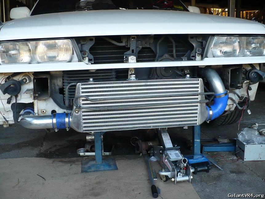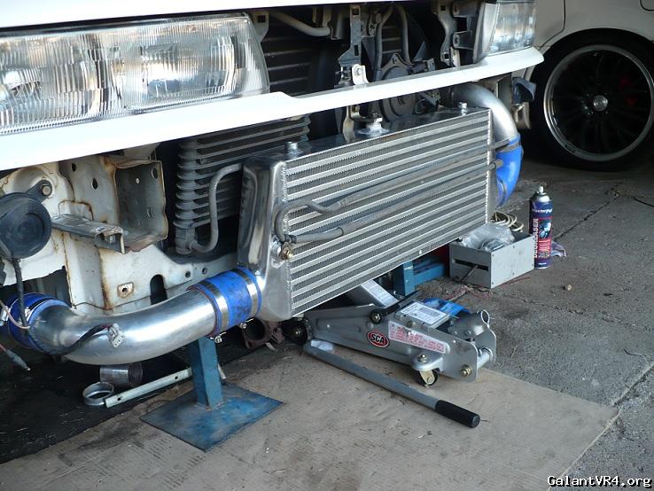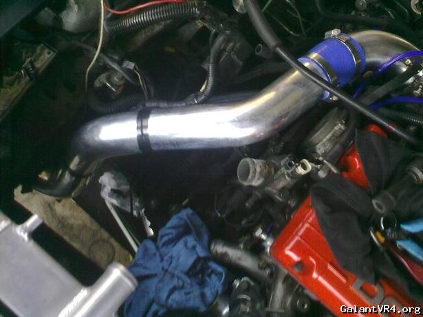 Next he wanted to upgrade the cooler & piping and no-one in AUS makes a kit anymore so I had to buy some 2.5" alloy bends, I cut the pipes until all pieces mated up. I then had to take to a mate to weld for me. The TB elbow I just got from DSM Parts as they sell at a great price. I fitted a 500x240x75 cooler where the old on sat.