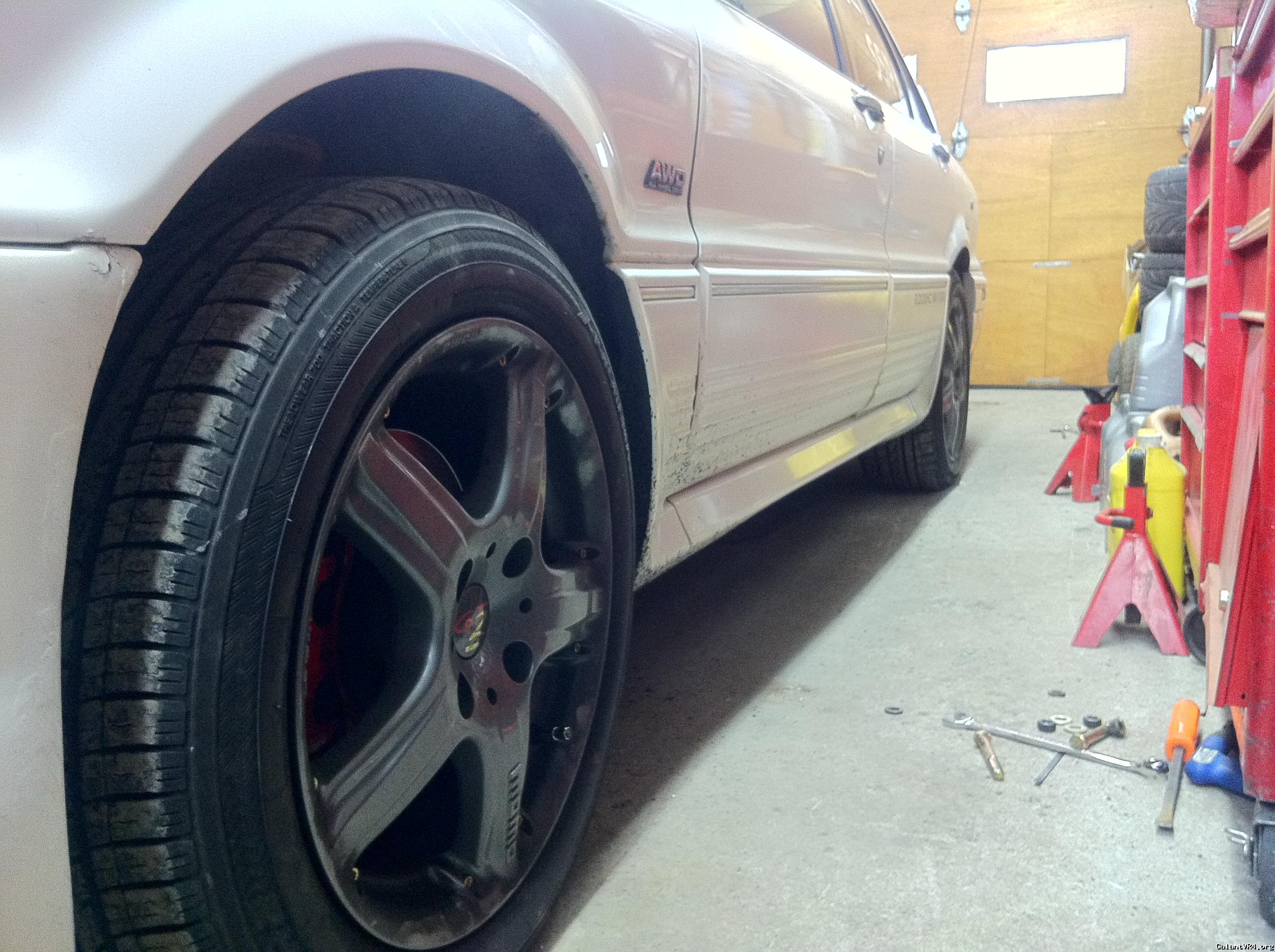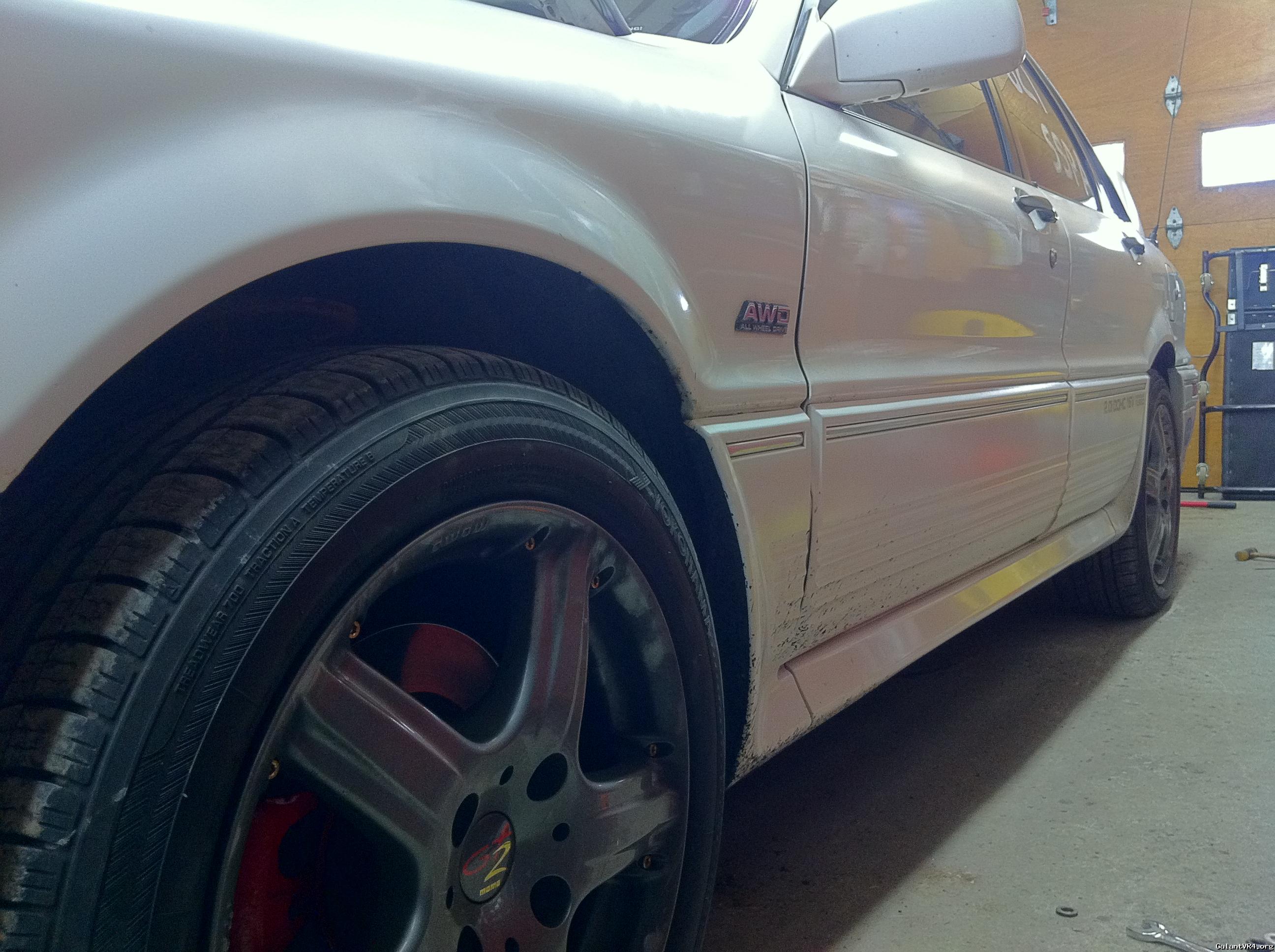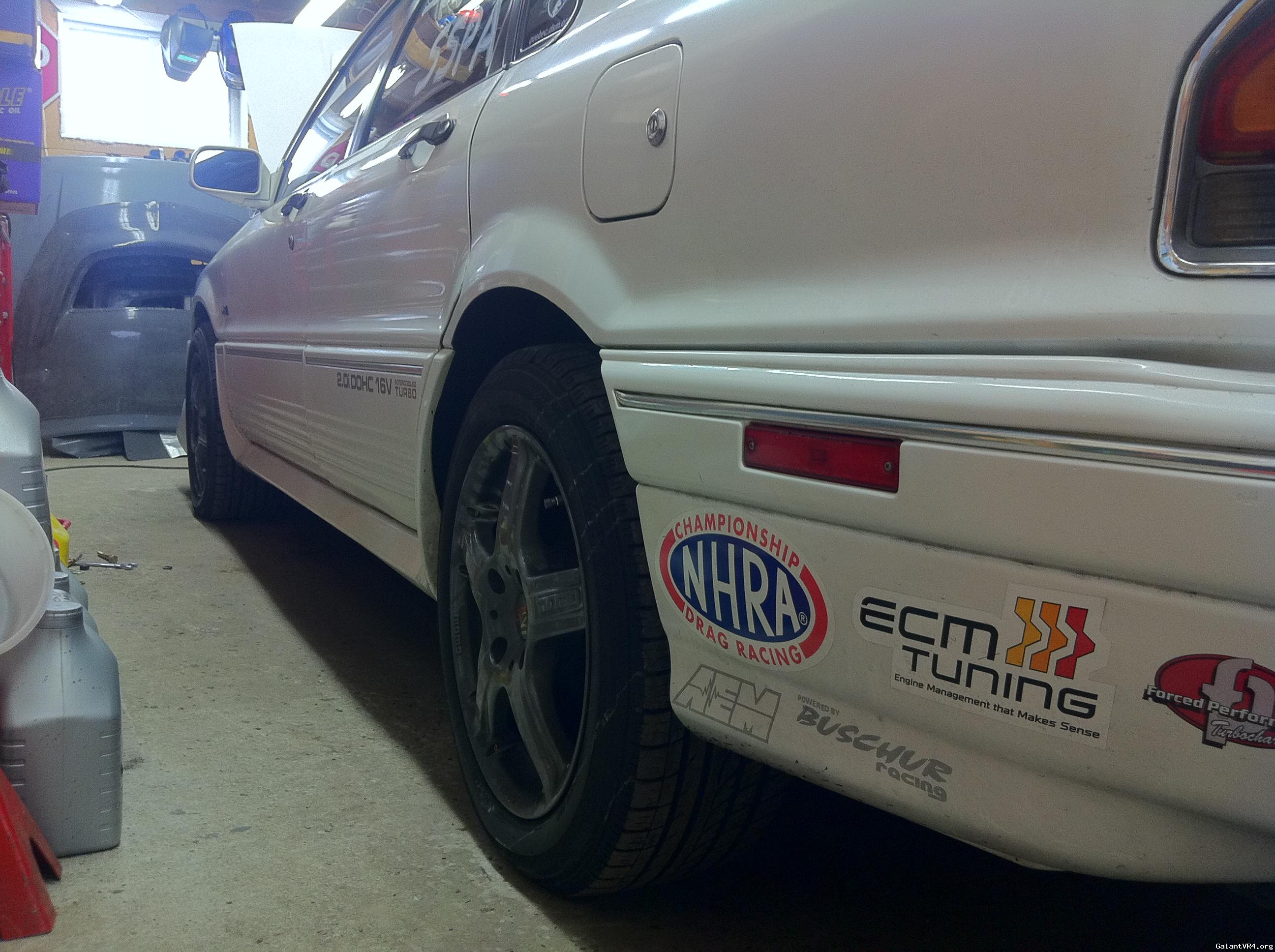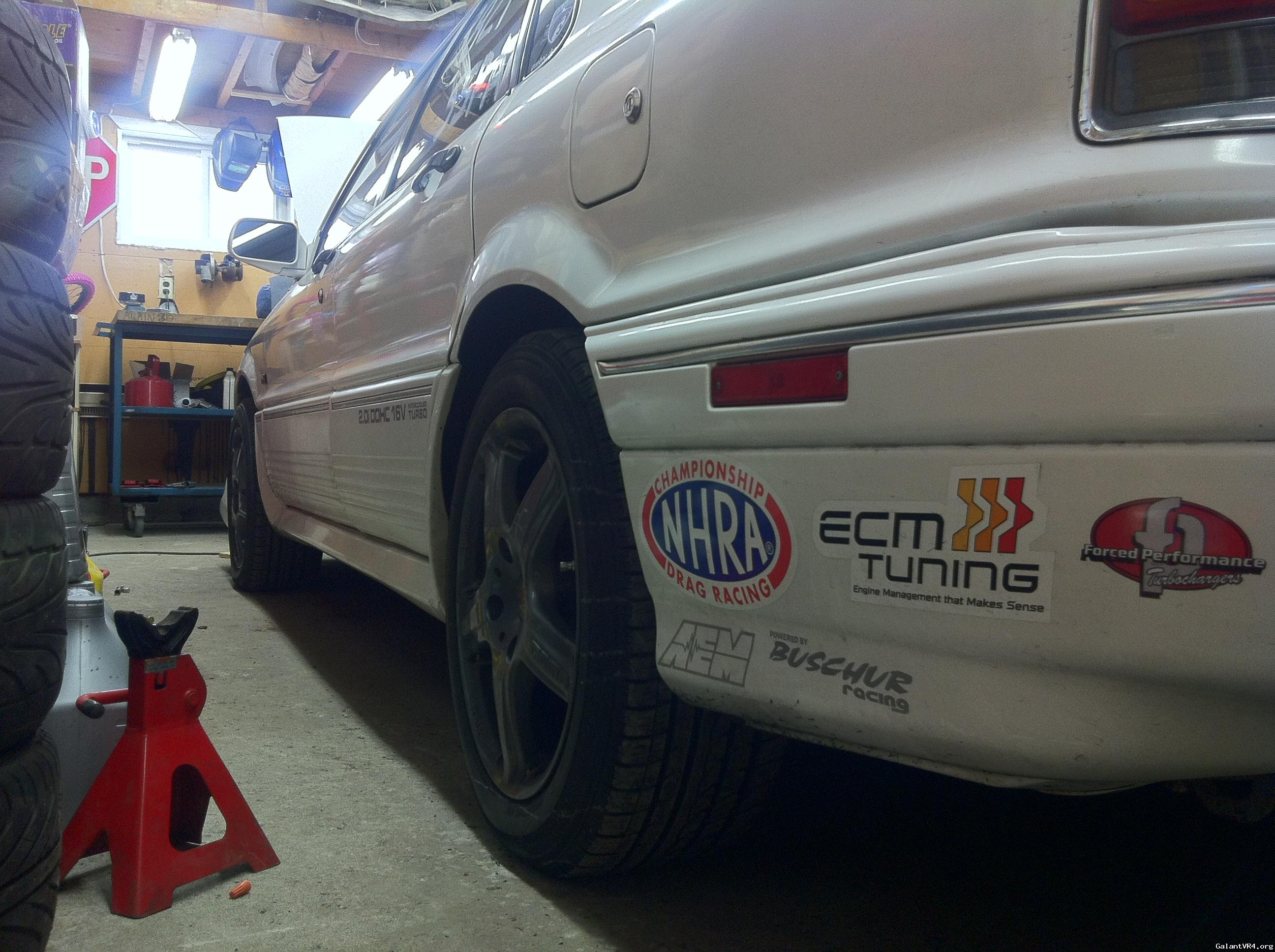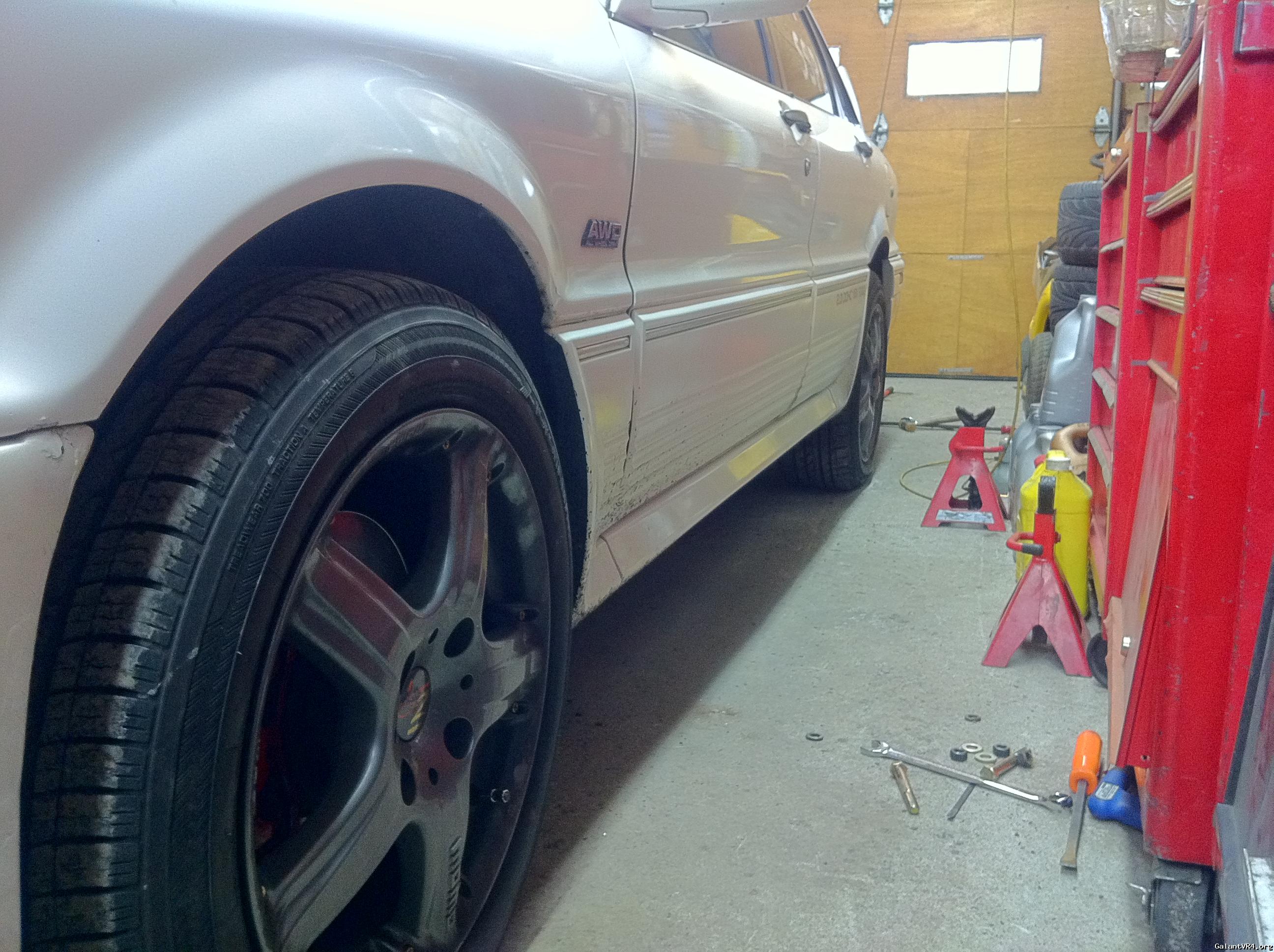 With the Galant strut/coil assy, I had 2 5/8" on front and 2 3/8" on the back. (Between top of tire & edge of fender)