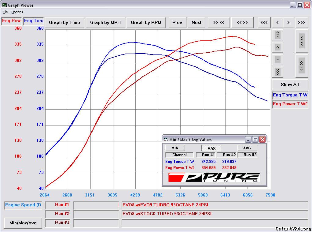 I think to really evaluate this mod you need to look at the wider picture. Both turbos are clearly 400 hp capable but we are talking about more than peak power output here. Mitsubishi clearly has (or had) a huge R&D budget and I don't think they made changes in their turbo design without good reason. The fact that they continue to use the newer twin scroll design should be evidence in itself before you even look at dyno graphs and the increased performance of each model they produce.