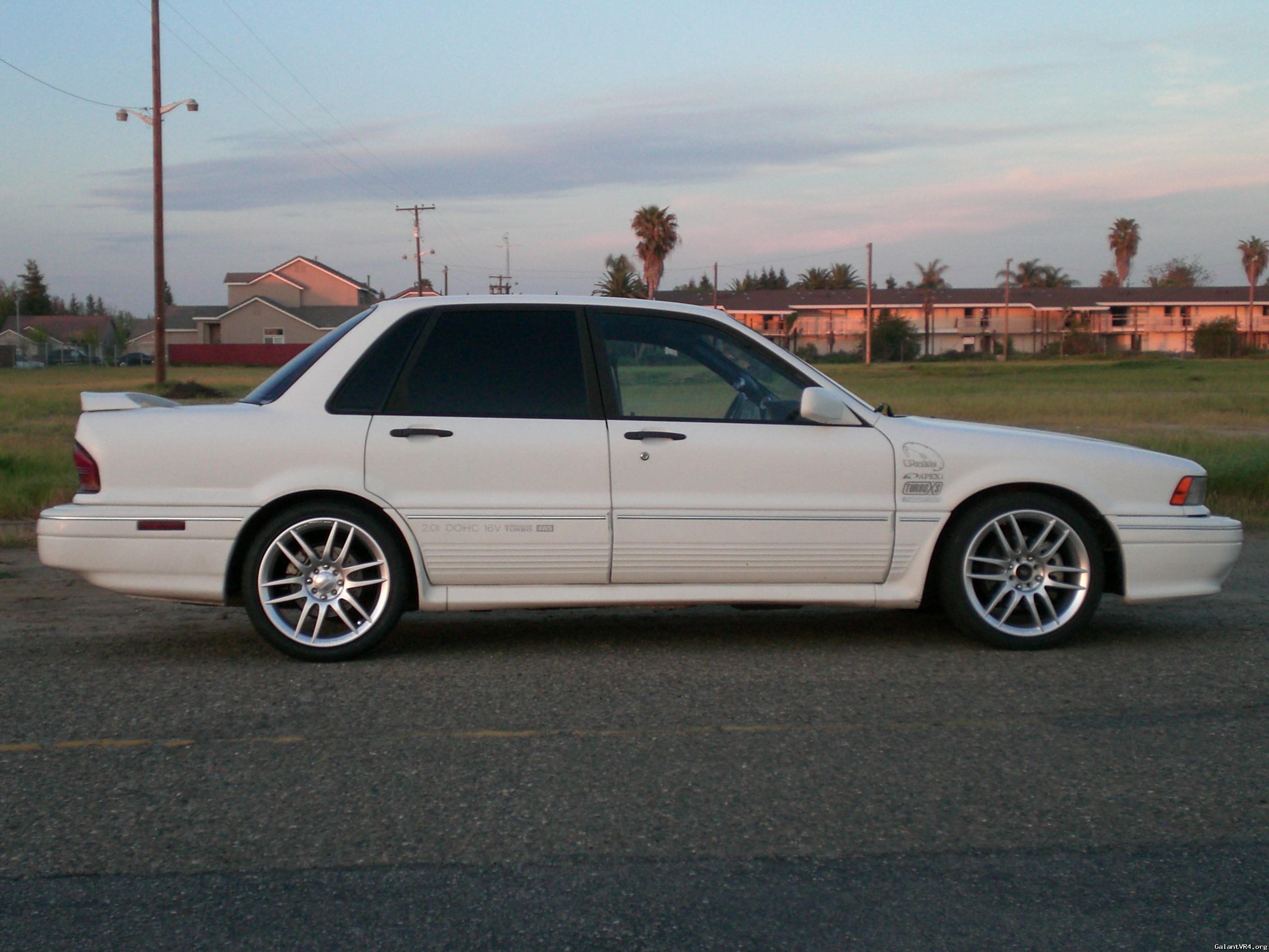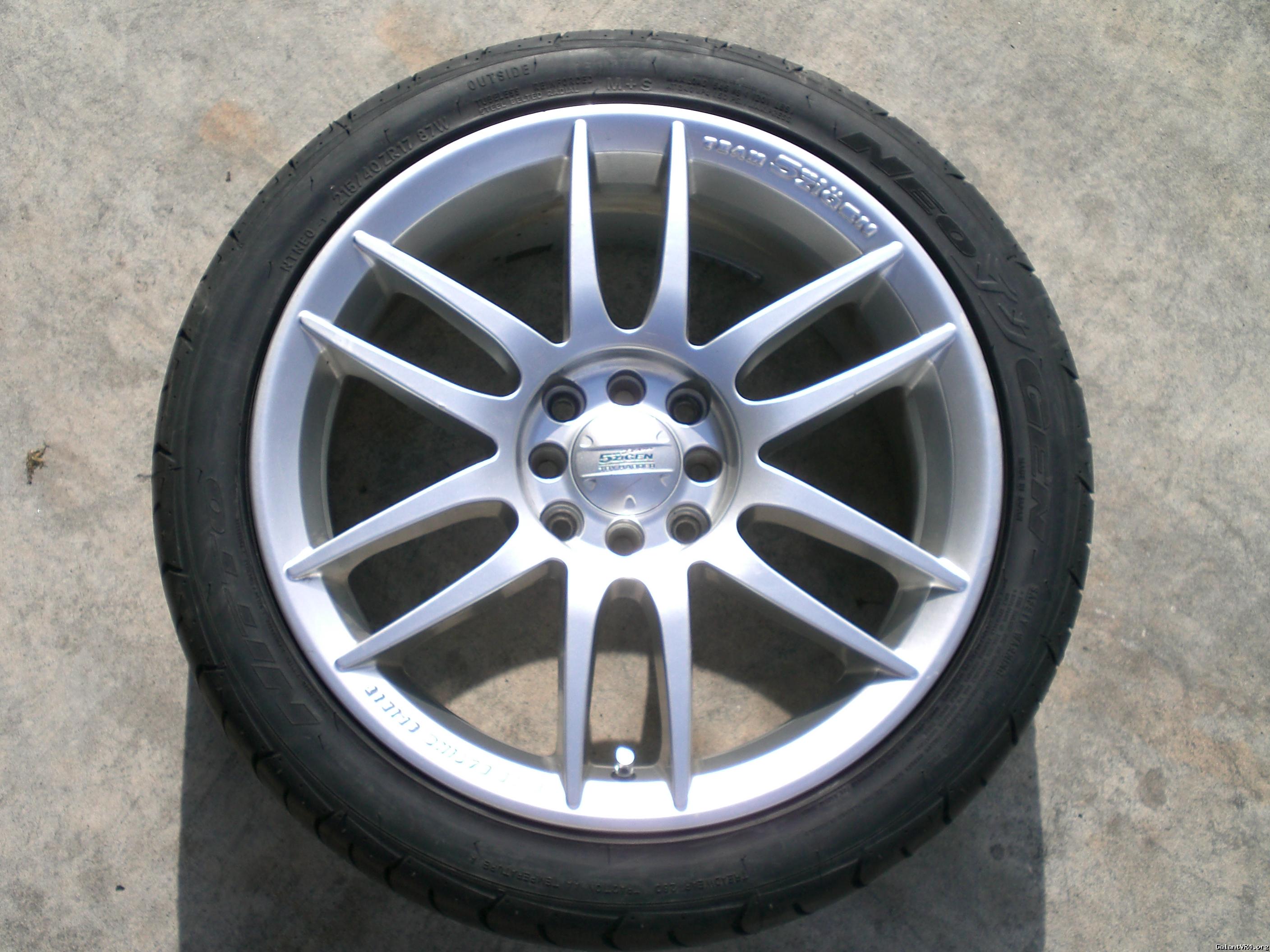 They are 4lug and look great on a Galant. In the pictures they have only a 215/40-17 tire and look a little small overall on the car because of it.