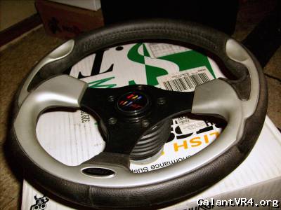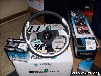 I have here a Brand new Grant GT Evolution Steering wheel part no. 1434. I paid $250 for it /ubbthreads/images/graemlins/crazy.gif not including the adapter. It was mounted to the VR4 but the car was never driven with the wheel on so it has never been used. This steering wheel is REALLY nice, it is the same quality as a Sparco or a Momo! Not like those cheap Ebay wheels that are somewhat flexible. This wheel will not bend it is VERY well made. There are links below so you can see all of the details, the links are to JEGS, shipped this wheel will cost $157 without the adapter for your car. The adapter kit will fit any Mitsubishi Galant, Eclipse, Eagle Talon, or Plymouth Laser between the years 90'-94'. The part number for this adapter kit is 4391. The second link below is the JEGS page for this adapter which shipped is about $28. I'm not sure if this adapter will fit other vehicles but you can get the adapter to fit whatever car you would like to put it on, Honda, Acura, Subaru, Mazda, Chevrolet, Ford, Kia, Scion, Toyota, Jeep, etc.....