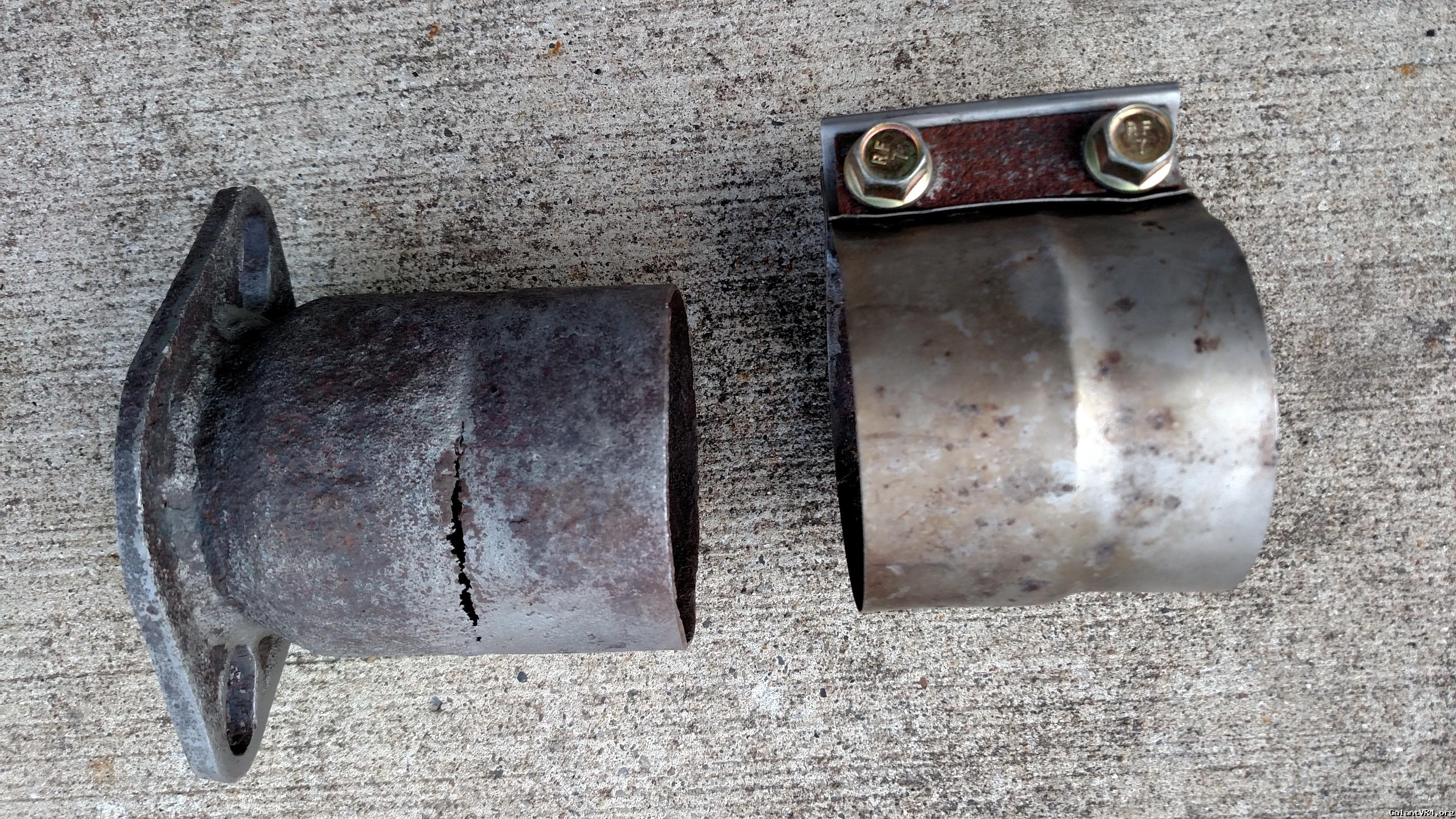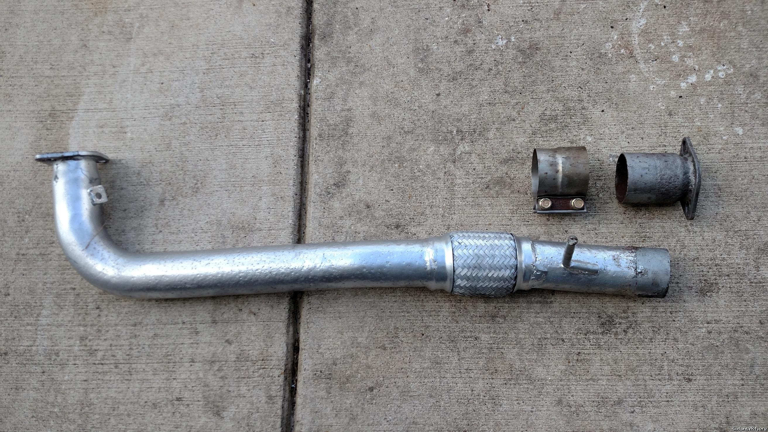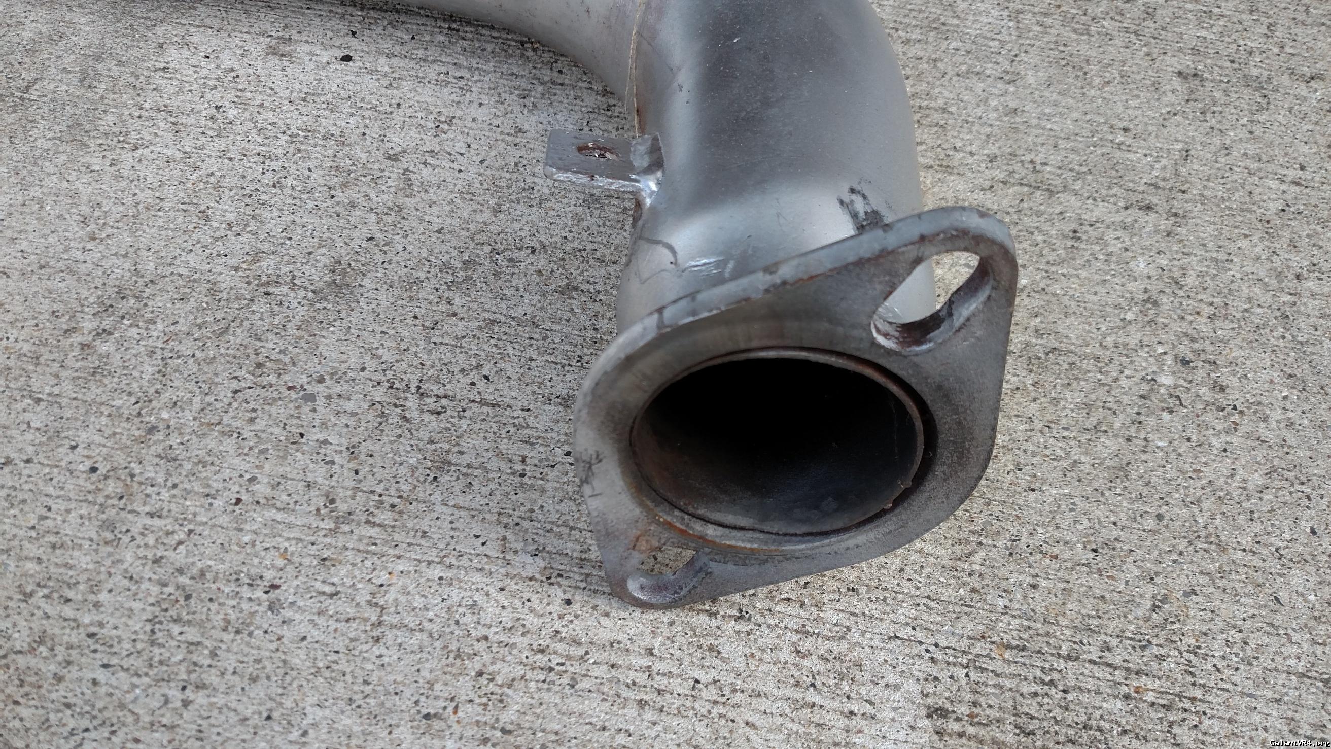 Pacesetter 2 3/4" downpipe for VR4 or 1g AWD. The slip fit clamp allows you to clock the rear flange and adjust length, or you can weld together. This got rusty so I painted it. You can see in the picture that there is still some pitting coming through. The adapter developed a hole as well. Fix, use the flange or replicate it, whatever you want.