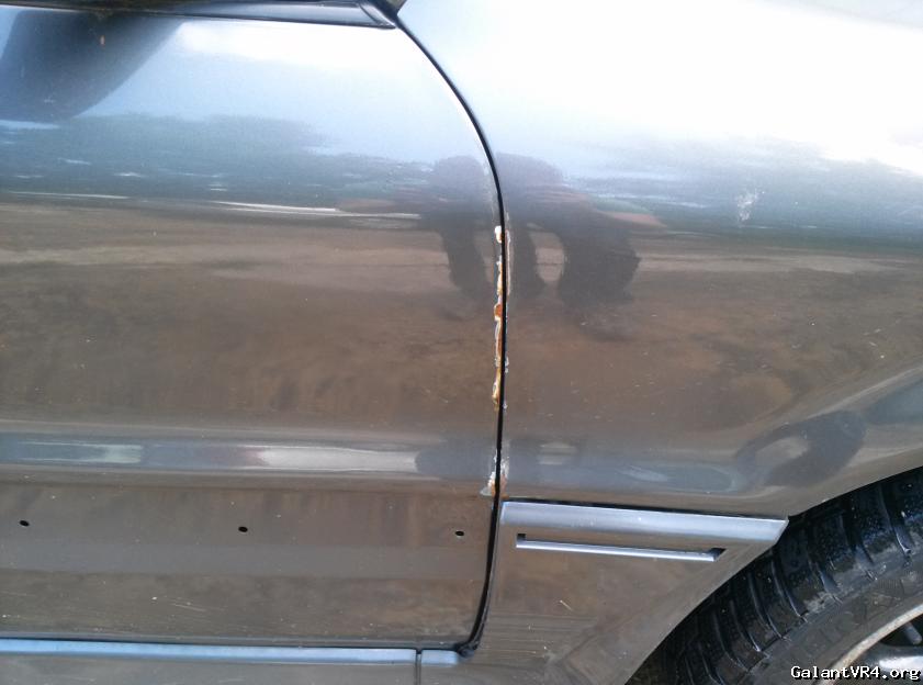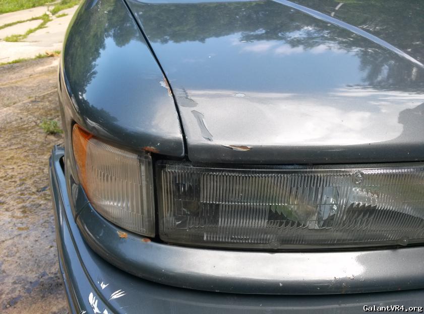 Years of daily driving the car took its toll. I kissed a dear with the front fender several winters ago (shown in pics). The fender being mis-aligned caught on the door and chipped some paint off (also in pics). The primer my friend gave me for the front of the car was not ideal and I believe this caused some surface rust to start bubbling up on the front edge of the hood, and the paint on the rear wing was never quite right so it is not installed but goes with the car.