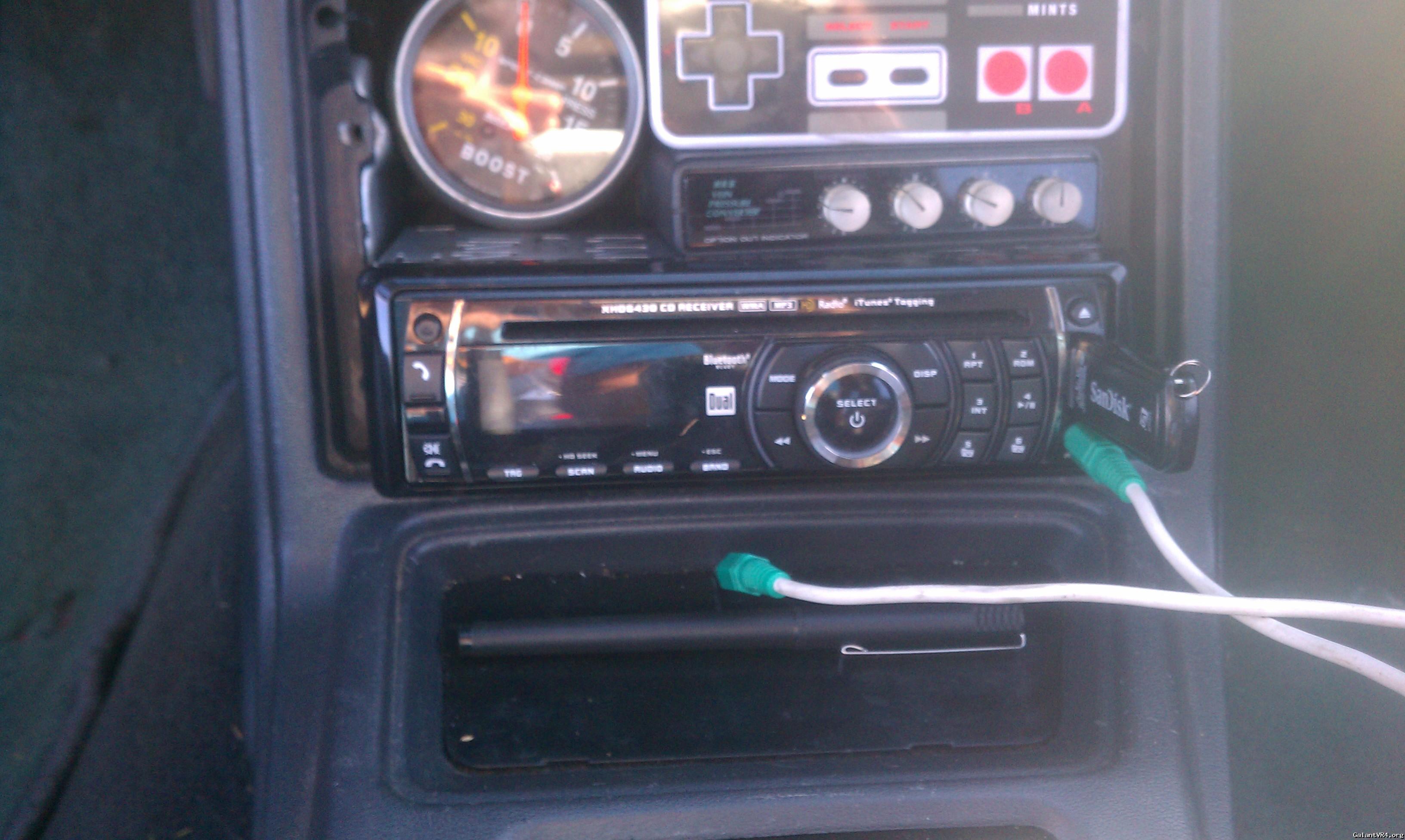 HEAD UNIT WITH PIGTAIL OF GALANT VR4 WIRES FOR EASY INSTALL (COLOR CODED) HAS BLUETOOTH, USB IN, AND AUX TO PLUG INTO YOUR DROID OR IPHONE. ( I CAN HAVE A CONVO THROUGH MY SPEAKERS, DOPE) 70 SHIPPED OBO