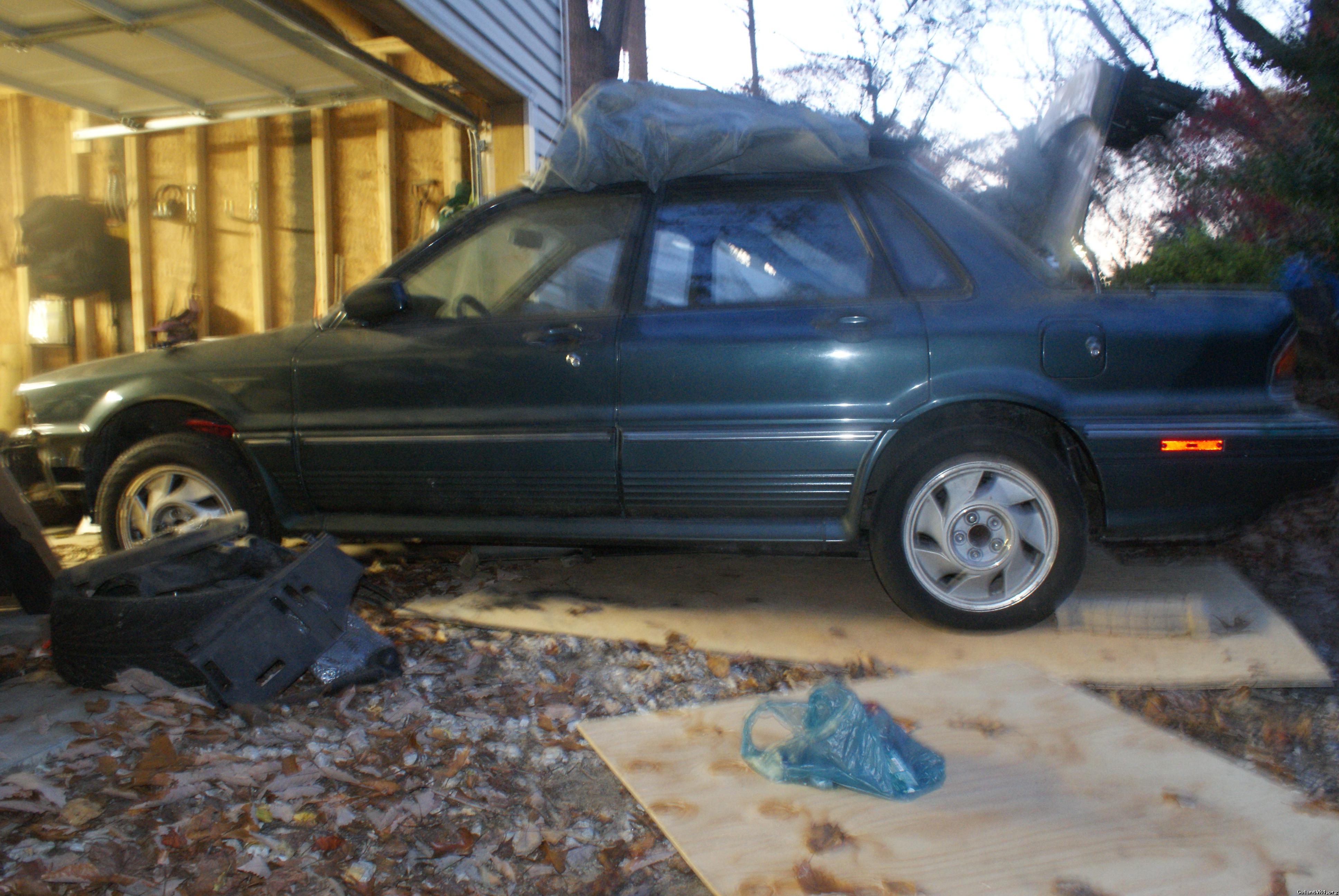 1992 galant vr4 shell belize green #416. the shell has no rust but there are the typical smaill dents and scratches for a car of this age. the drivers rear quarter looks to have been hit before and someone did some small bondo work and spray painted it a different green. shell has a 5 lug swap with 1g eclipse wheels.