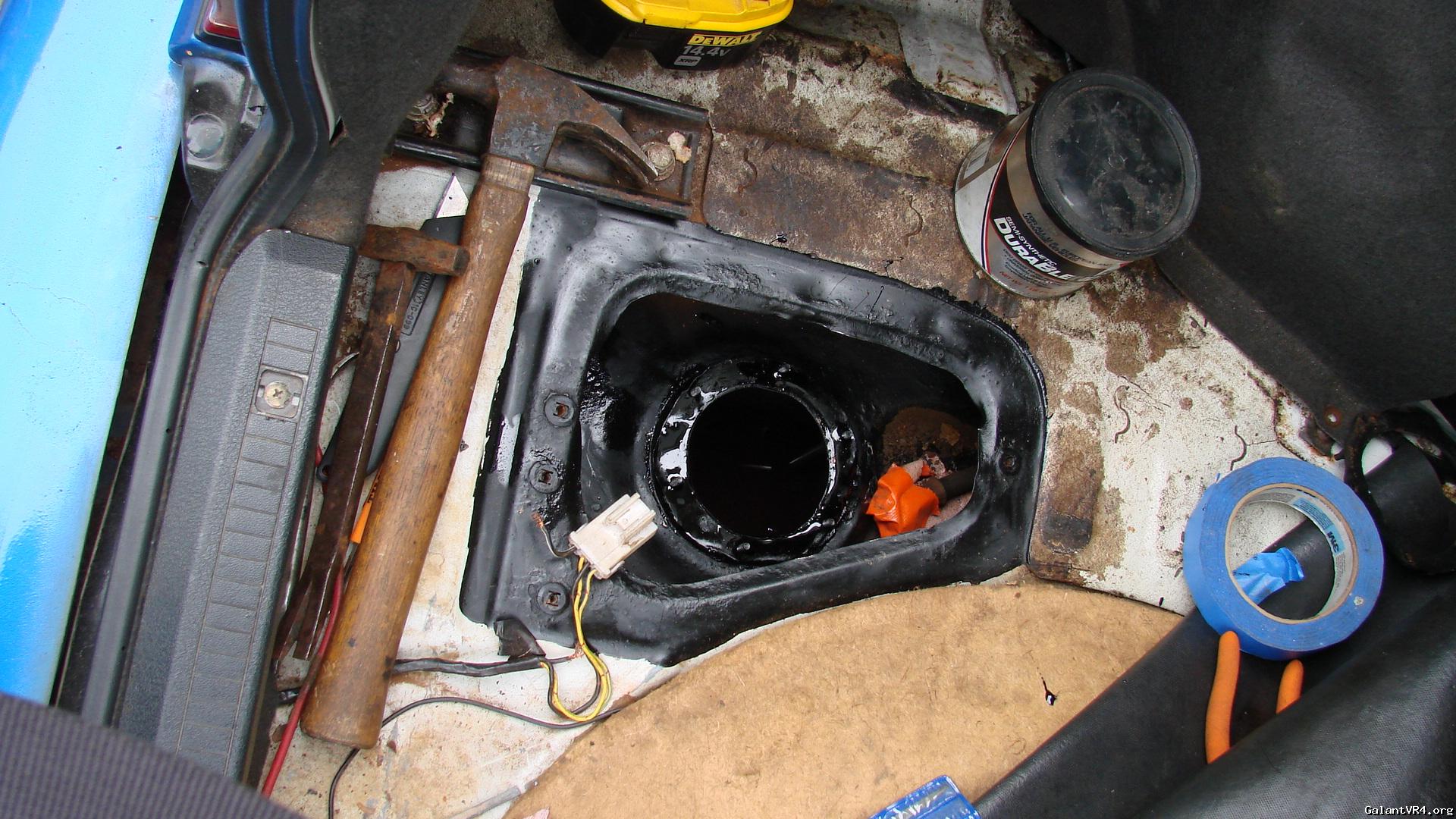 I just fixed mine the other week. It had no studs and 9 holes drilled in the top as well as half the flange missing. Add in the fact that I was afraid of busting every mounting screw if I attempted to drop the tank to have a new one welded on I ended up with this.