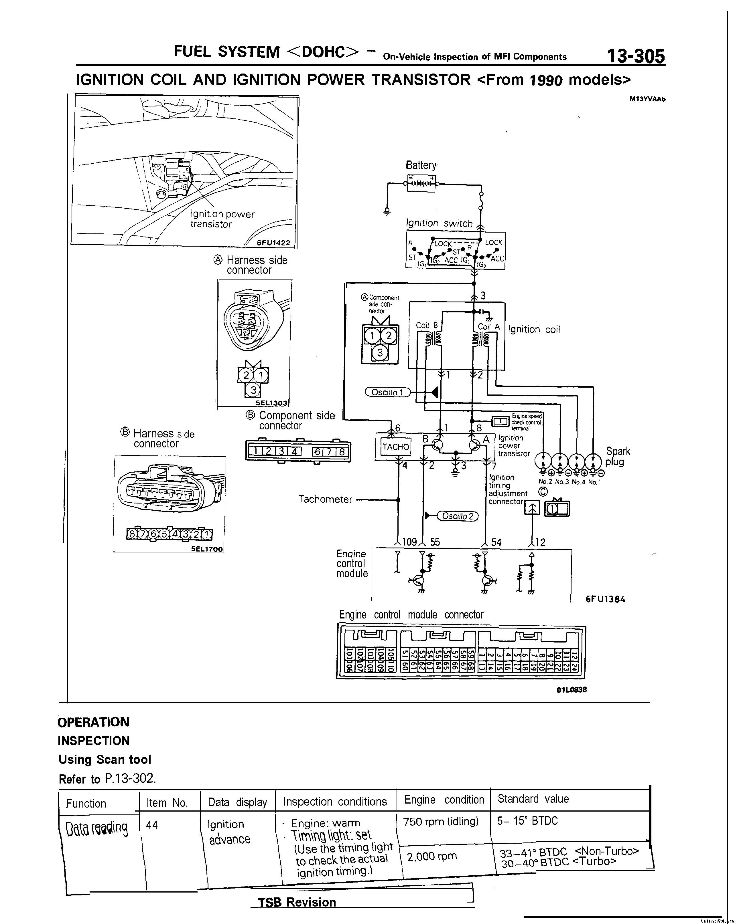 DOHC Ignition circuit and connectors (bigger Ign. trans., tach signal comes from wire #4, shared with ecu pin 109)