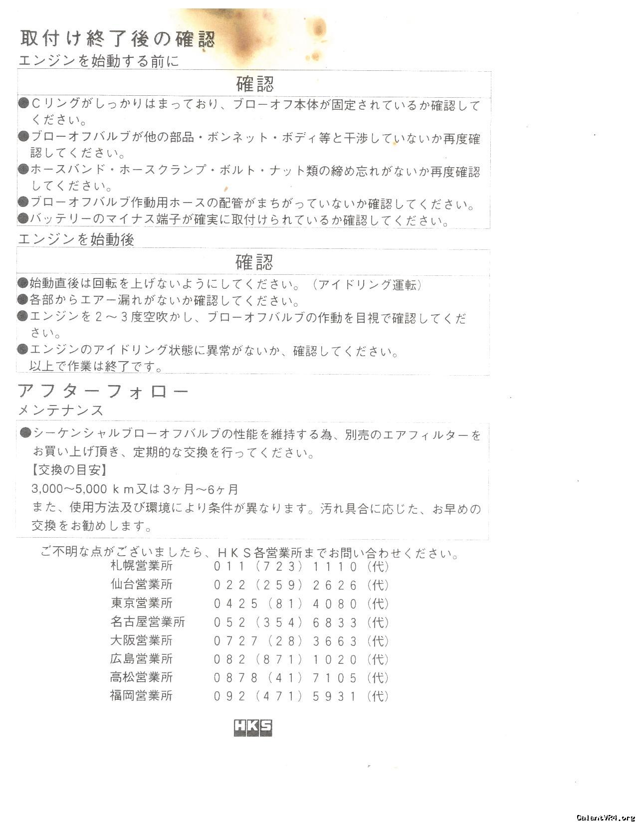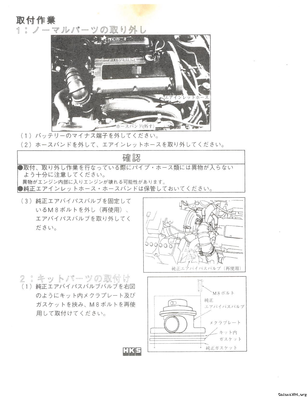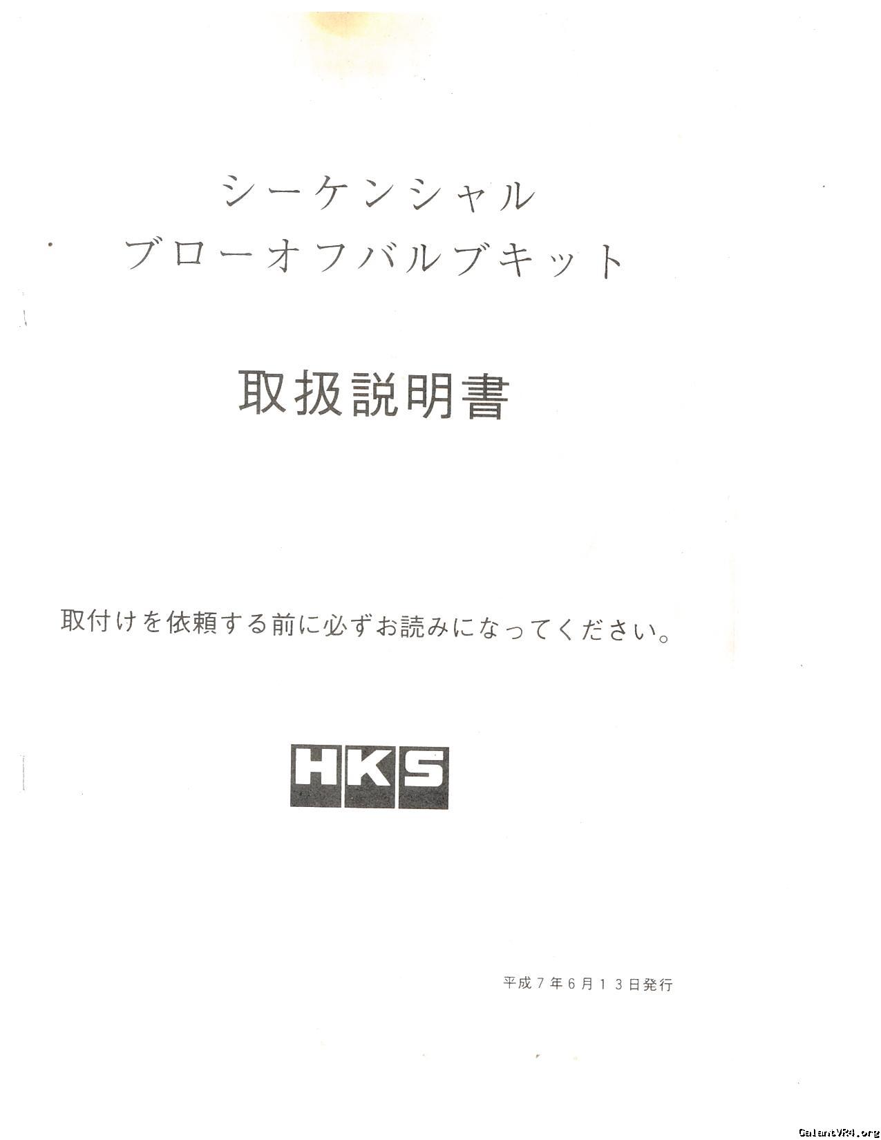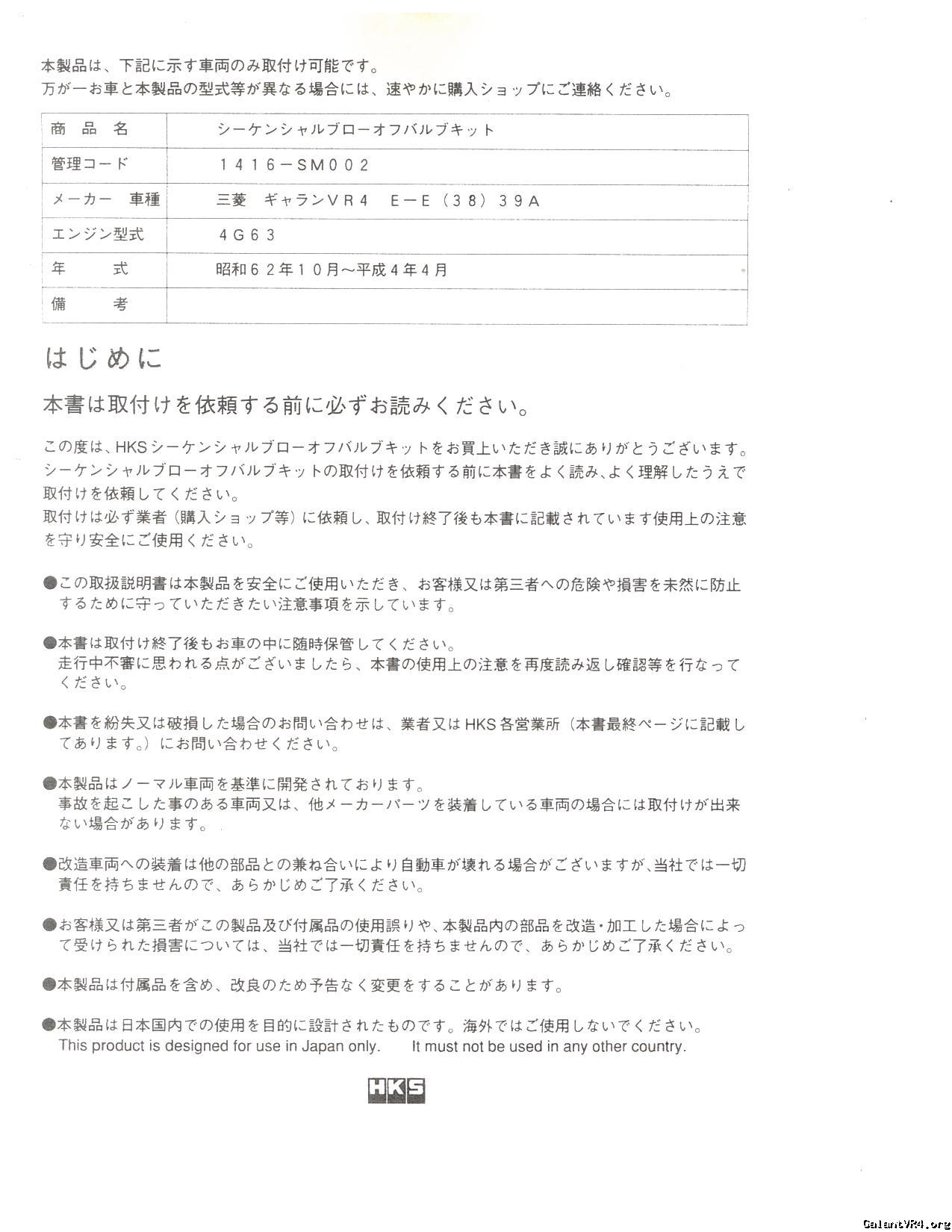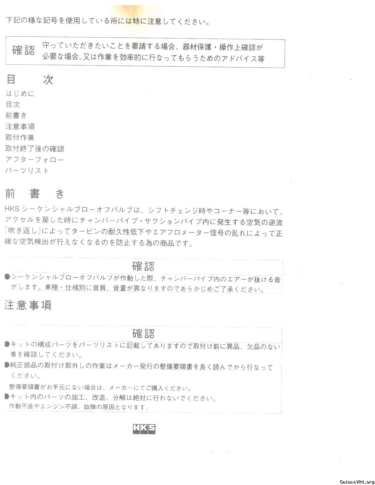 Below are the installation and parts list manual for the HKS Sequential Blow Off Valve for the E39A Galant Vr-4 part no 1416-SM002. This posting is a courtesy from G who recently imported this into the US.