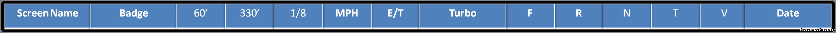 Regarding the gvr4.org stamping, there's no way to avoid it. If I blow up the image to get it out of the field of view, the image isn't sized properly. If I host the images off of the forum to avoid the tag, we risk losing the data if anything happens to the hosting provider. A perfect example of this was the old list. The links RedTwo had built into the old list were hosted on Imageshack. When Imageshack started charging people for space, those who didn't pay lost all their sh*t, hence a bunch of broken links on the old 1/4 leader board. If everything is hosted here on the forum, there's no risk of the data being lost...Unless the website goes down, in which case, nobody gives a f*** anyways at that point.