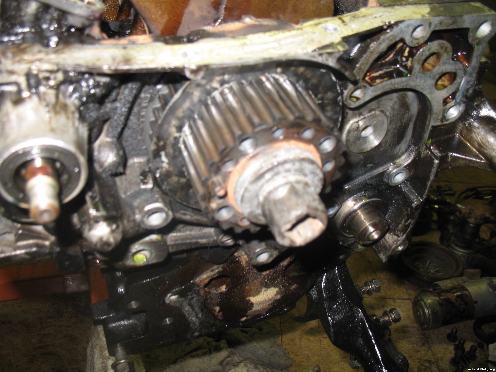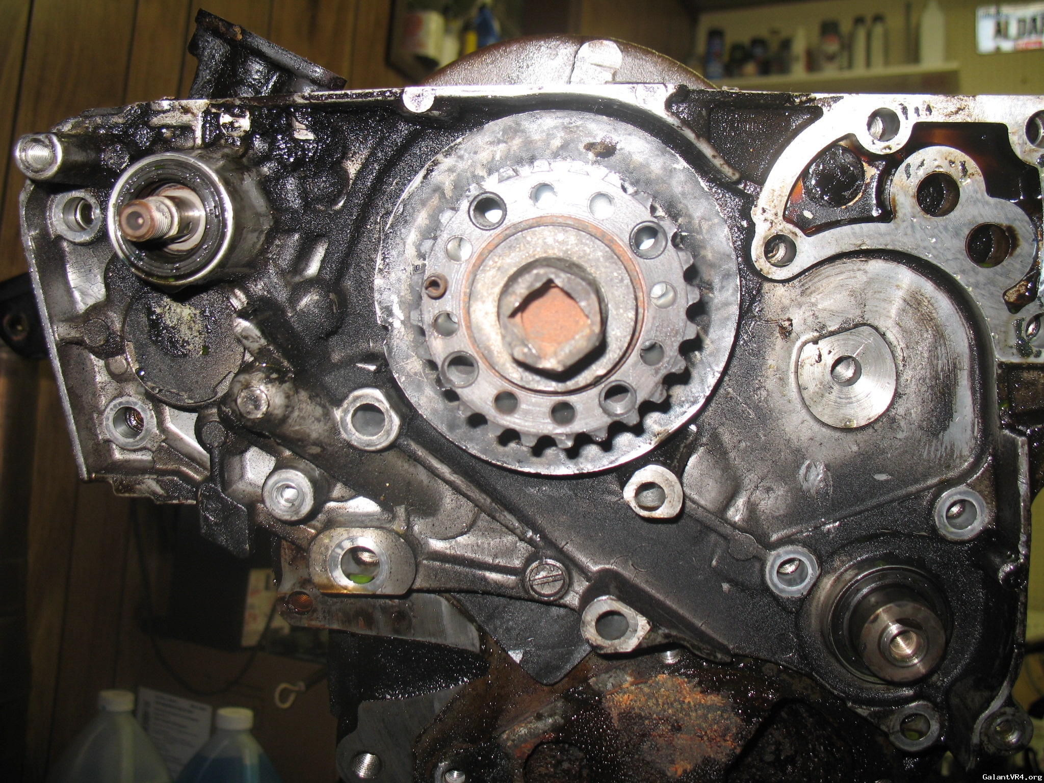 If your afraid of using a bar inside against the crank, put a few flywheel bolts back into the back end of the crank and then use same bar across the bolts to hold the crank from spinning (need two people).