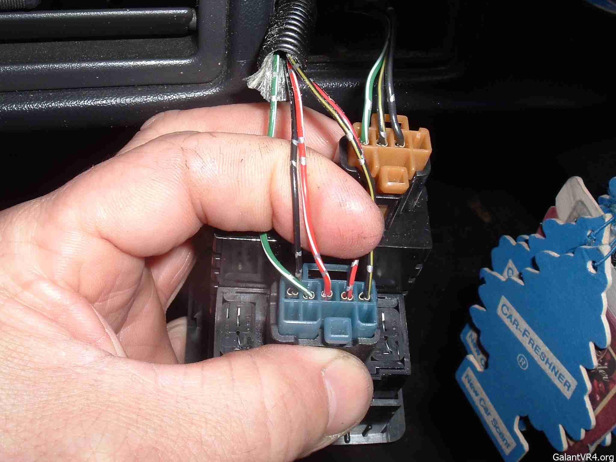 1. Remove fog light switch from dash (it just pops out) and locate the black wire and the red/white wire on the blue connector.