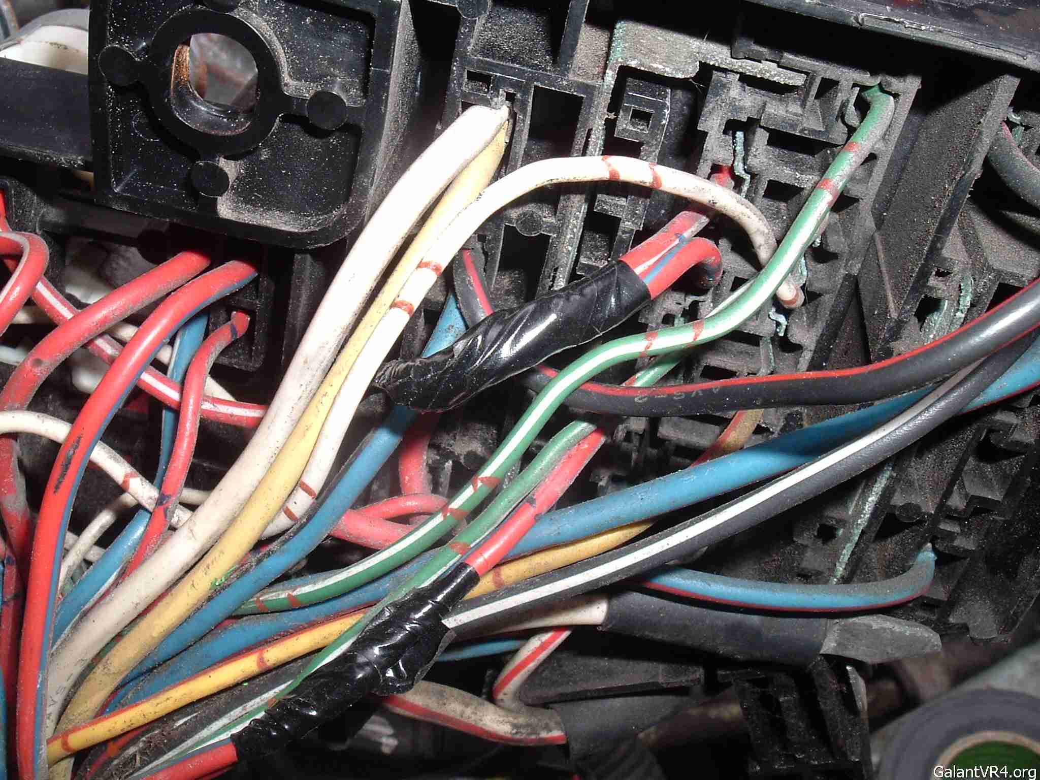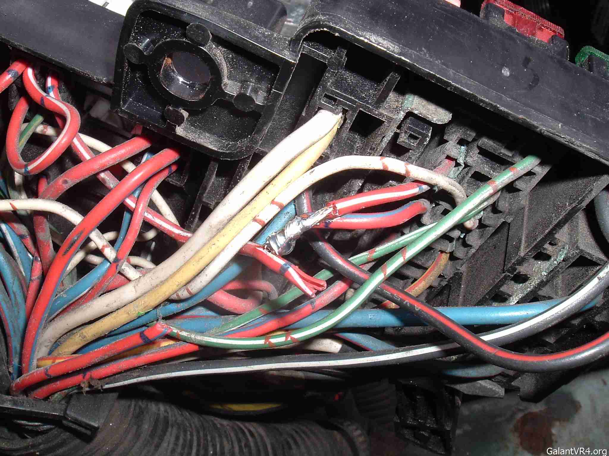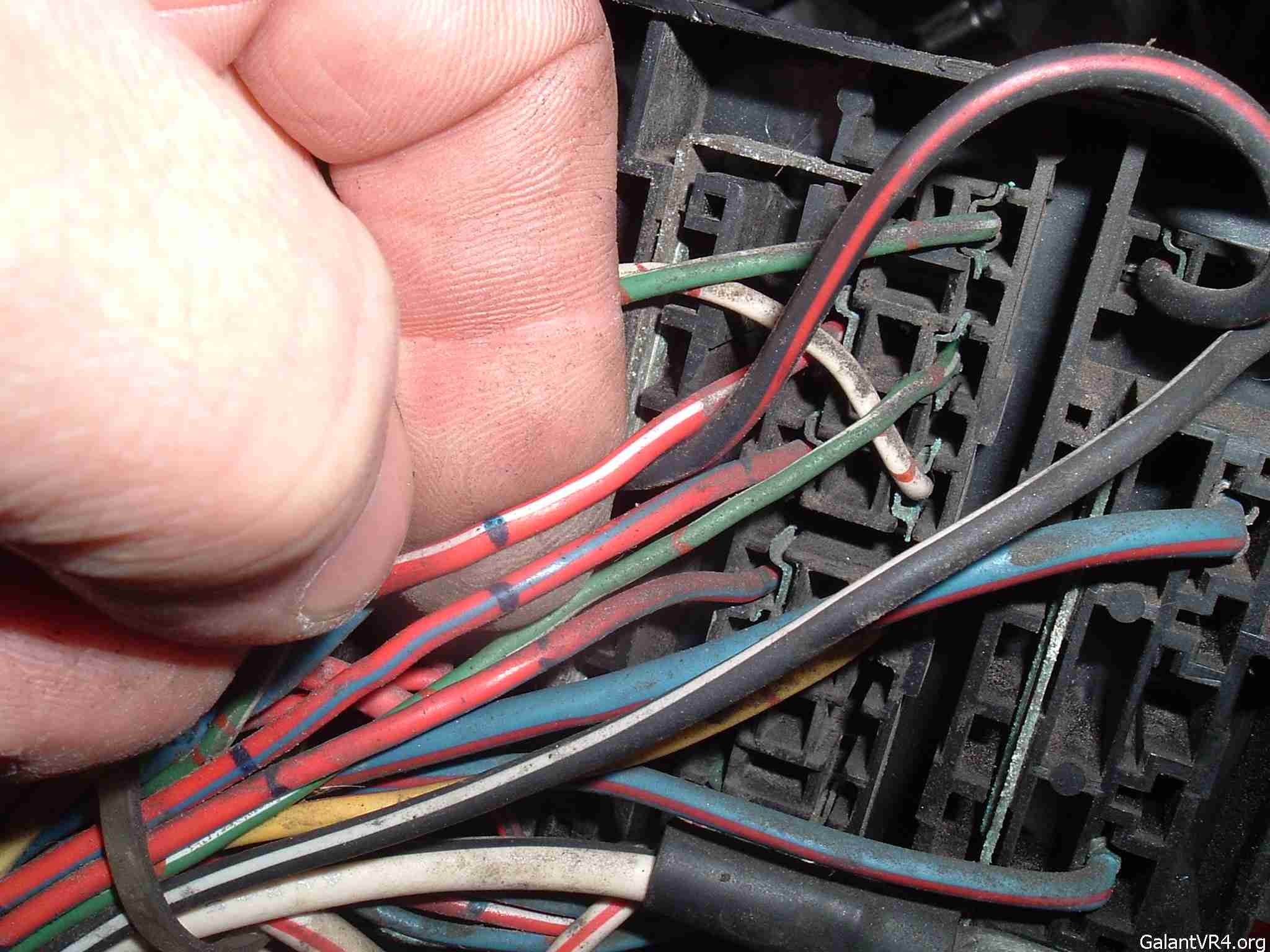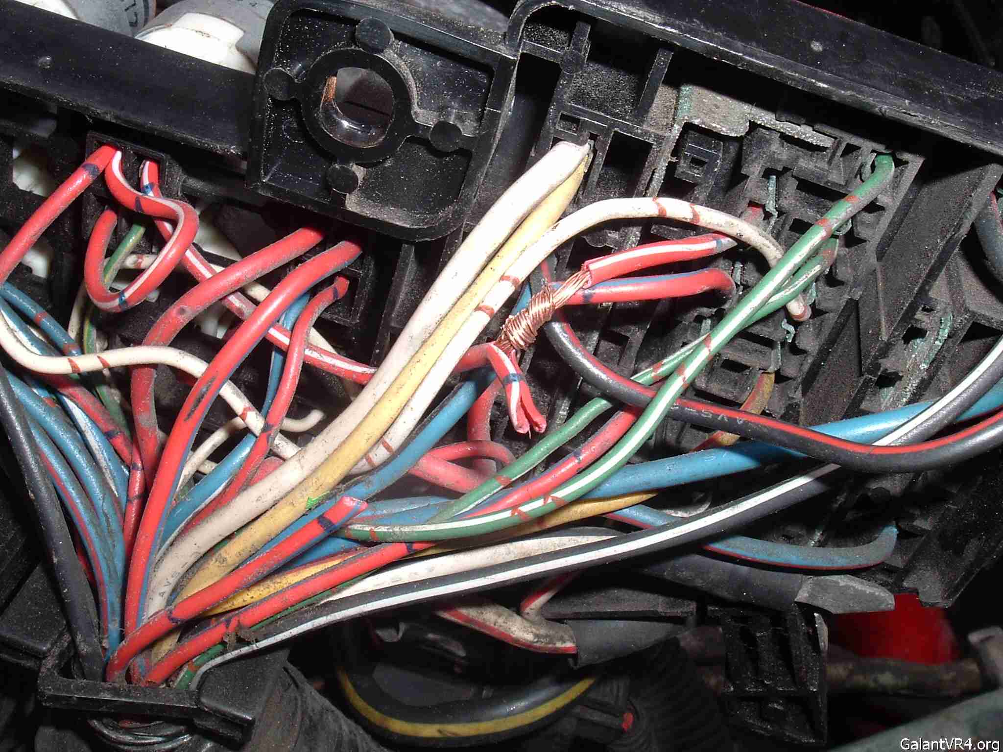 4. Cut the red/blue wire a couple of inches from the fuse box, leaving yourself enough wire to work with. You can tape up the harness end as you will not need that anymore. Strip the end of the fuse box side of the red/blue wire, strip a section of the red/white wire so that the red/blue wire can be wrapped around it.