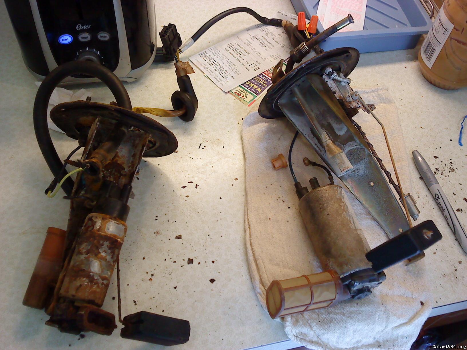 1)take out the fuel pump(I left the wiring on the pump cuz they are still good) off the eclipse