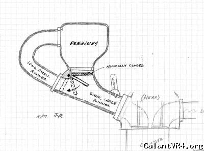 so, a true dual runner intake would have a 'flapper' that would close off the short/large runners until a higher rpm/load (depending on how you set it up) and when it hits that variable (rpm), it opens the short/large runners and closes the long/small runners, giving it the best of both worlds...In a good design, it would have a 'fail closed' on the short runners, so in the event of failure, it goes thru the long, giving it better drivability, etc.