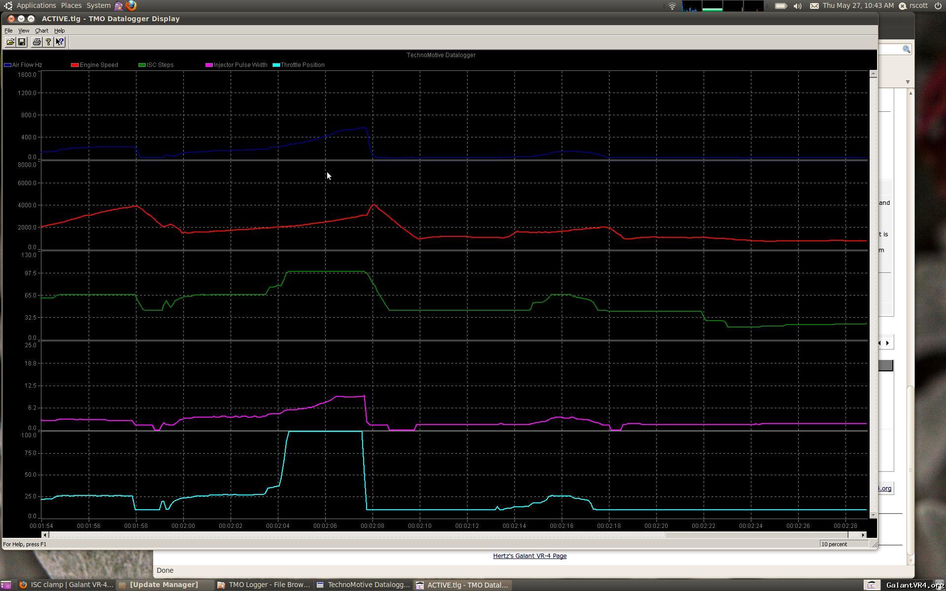 My VR4 has a bizarre behavior that not many people mention but which is, I believe, fundamental to the design of the DSM throttle body. Under normal driving conditions or when at WOT the ECU opens the ISC all the way. This is done so that if you abruptly close the throttle the car won't buck as hard. The problem is that if you go from WOT to closed throttle for a hard shift, the ISC hangs open for about a second which lets a fair amount of fairly dense air past the throttle plate and causes the rpms to spike. At first I thought it was driver error but I've look at my logs and the spike occurs AFTER the closed throttle switch is triggered.