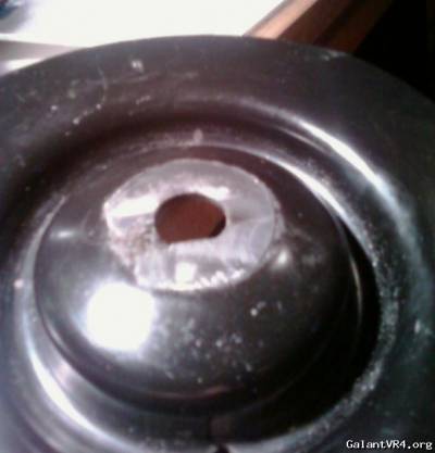 Here is the strut with the mount removed. The spring is completely compressed and the spring perch is in its lowest possible position, basically, they flat keyed section stops. The bottom spacer, which is identical to the top spacer, is a perfect fit for the threaded part of the shaft but stops at the section where the keyed flat part is for the spring perch as you can see. According to my measurements, with both spacers installed into the camber plate there is a gap between them of maybe .2" so installed on the strut, in the plate, they won't actually touch, there will be a gap. Here is why that is a problem...