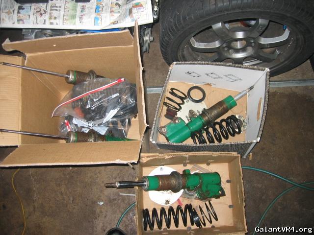 The TEINS are FINALLY almost done! By that I mean that all parts have been painted but more importantly I FINALLY got the parts from TEIN!!!! New parts include camber plates, rear pillow mounts, new dust boots, bump stops, spring seats/lock(frozen) rubber spring perch and hardware. The part numbers have changed but they will continue to build compatible models.