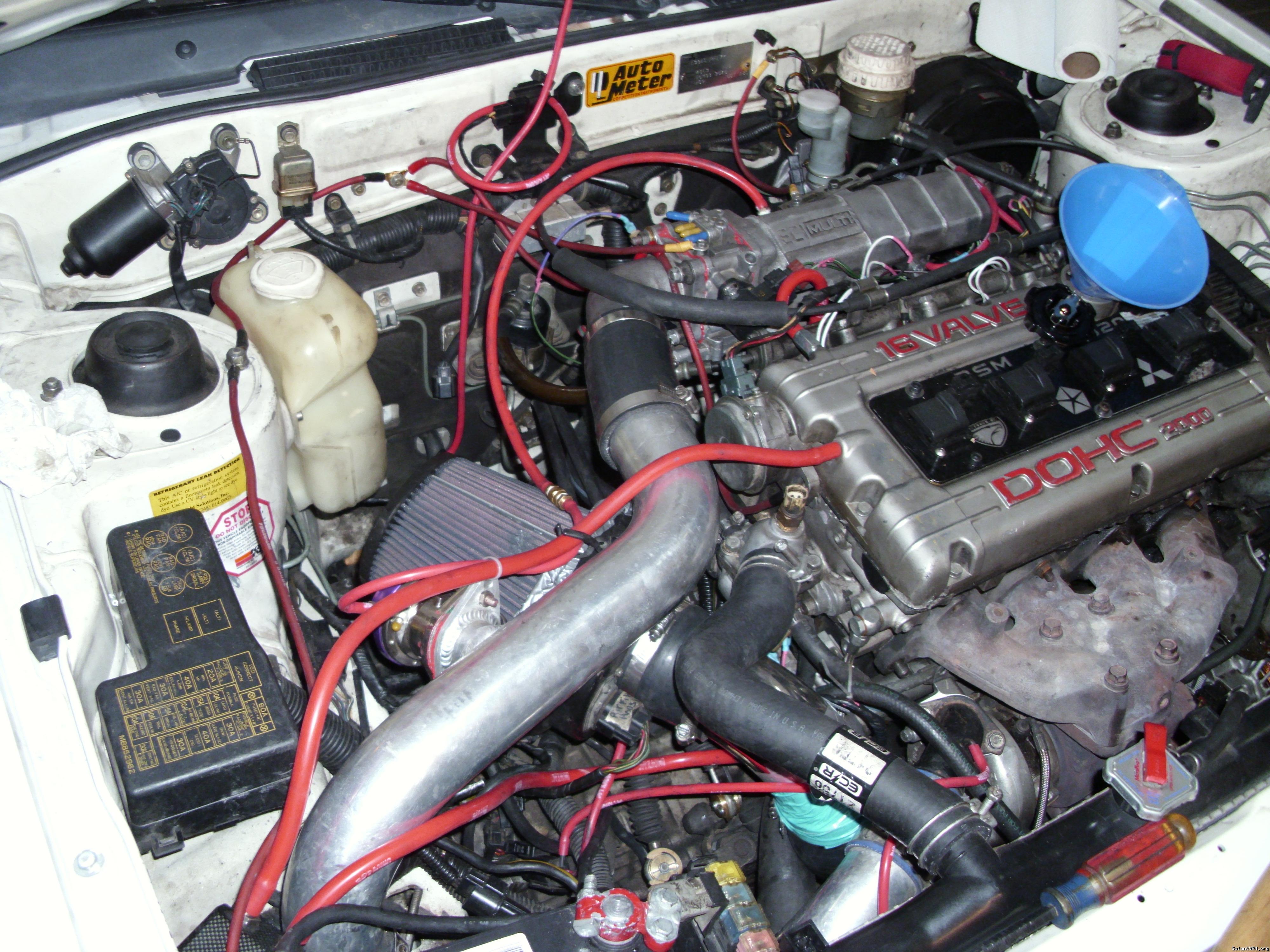 Alright mods i think or was told were on the car. 5 lug swap with Evo 8 wheels, 16g turbo with 2g exhaust manifold and possibly 2g o2 housing, 3" turbo back with a magna flow muffler, 1g dsm shifter, 4 bolt lsd rear diff. A walbro 255, that thing is loud. It also has what appears to be a 1g side mount intercooler(really want to replace soon. Thinking about just getting a ebay kit.)And a greddy knock off BOV, non-recirculated. Really want to replace that with probably a stock 1g bov and would love to recirculate it also.