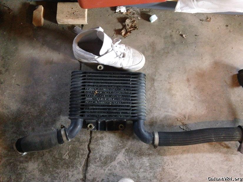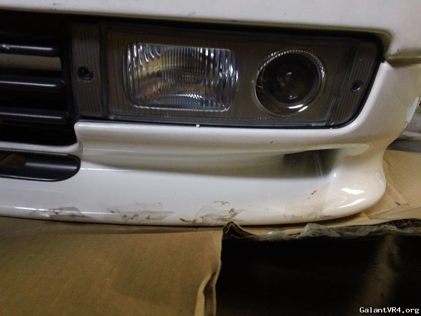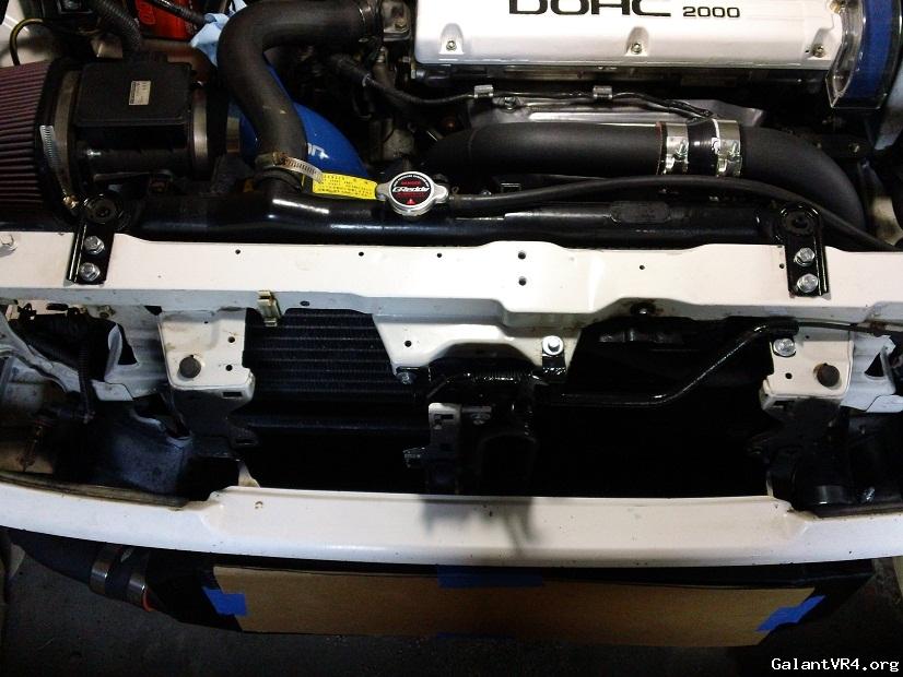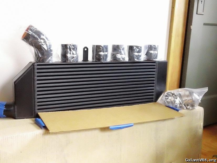 RS Evolution front bumper. I wasn't planning on getting one so early, but it just happened to be available on ebay shortly after my buddies helped me trim the crash support on the USDM bumper. Will get the most flow to the intercooler, which I consider an upgrade and it's light. I didn't cut the slats out of the USDM and I will not cut the slats on the RS either. Love me some slats. Bumper is in pretty nice shape too and no cracked end caps, just a bunch of tape residue. Need to get the fogs wired up as well. My buddy Charles should be helping me on that. Picked up some JDM brackets from Curtis, which are very nice. I couldn't get a wider shot of the bumper since my garage is cramped, so these are just teasers. The look of the black intercooler against the black slats will really keep it sleeper.