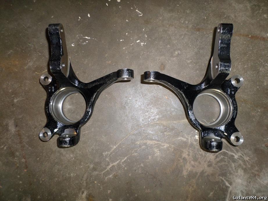 Fronts complete. Bob machined the upper spring perches to a tad over 14mm to fit over the square shoulder. Shafts are also perfectly centered within the bearing.