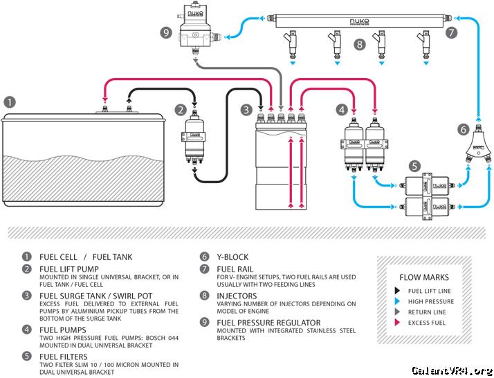 I get that, but the 255 still needs to supply enough volume to feed dual 044s at a given pressure, otherwise the surge tank gets sucked dry. I didn't crunch the numbers, but it seems like a 255 wouldn't move enough fuel to feed two 044s. I certainly don't think a stock pump would not get the job done. Don't dual 044s require quite a bit more than a single 255 could move even at 0 psi? Based on some of feedback I've heard about the Walbro 450, it seems like it would be adequate, though. I know Donnie said his IDCs were pretty manageable even at like 40psi of boost @ base fuel pressure.