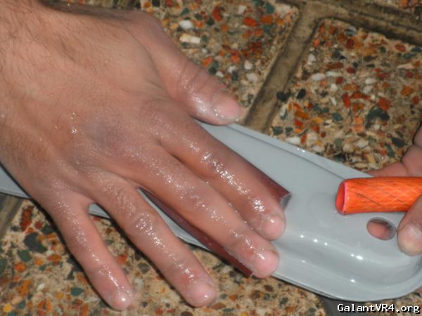 First, all parts are washed with water and foam