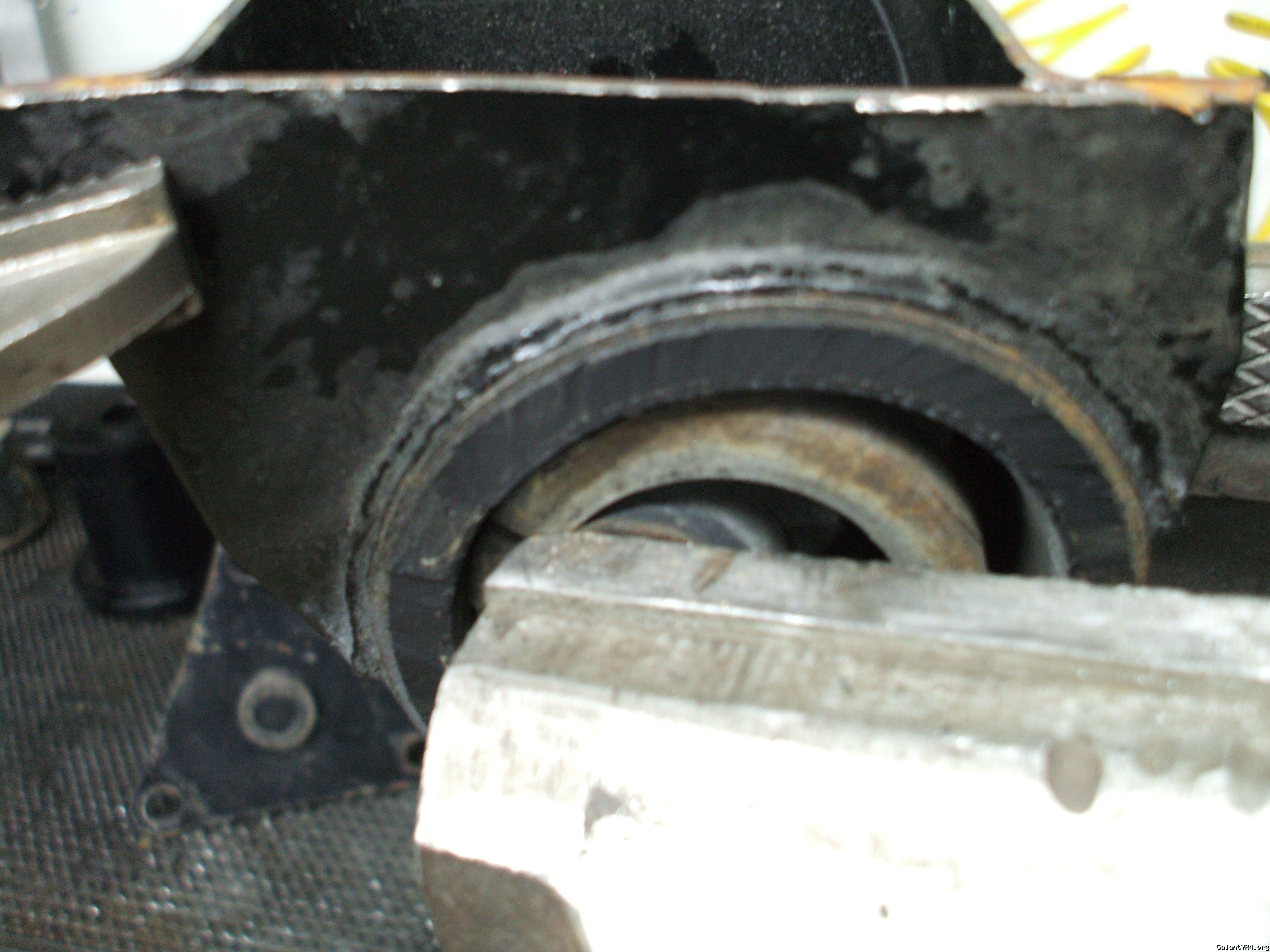 First thing I did was cut the outer most part of rubber from around the edge so to secure this in a vice to show the amount of deflection in the part even when it has no cracks or rips in the rubber.