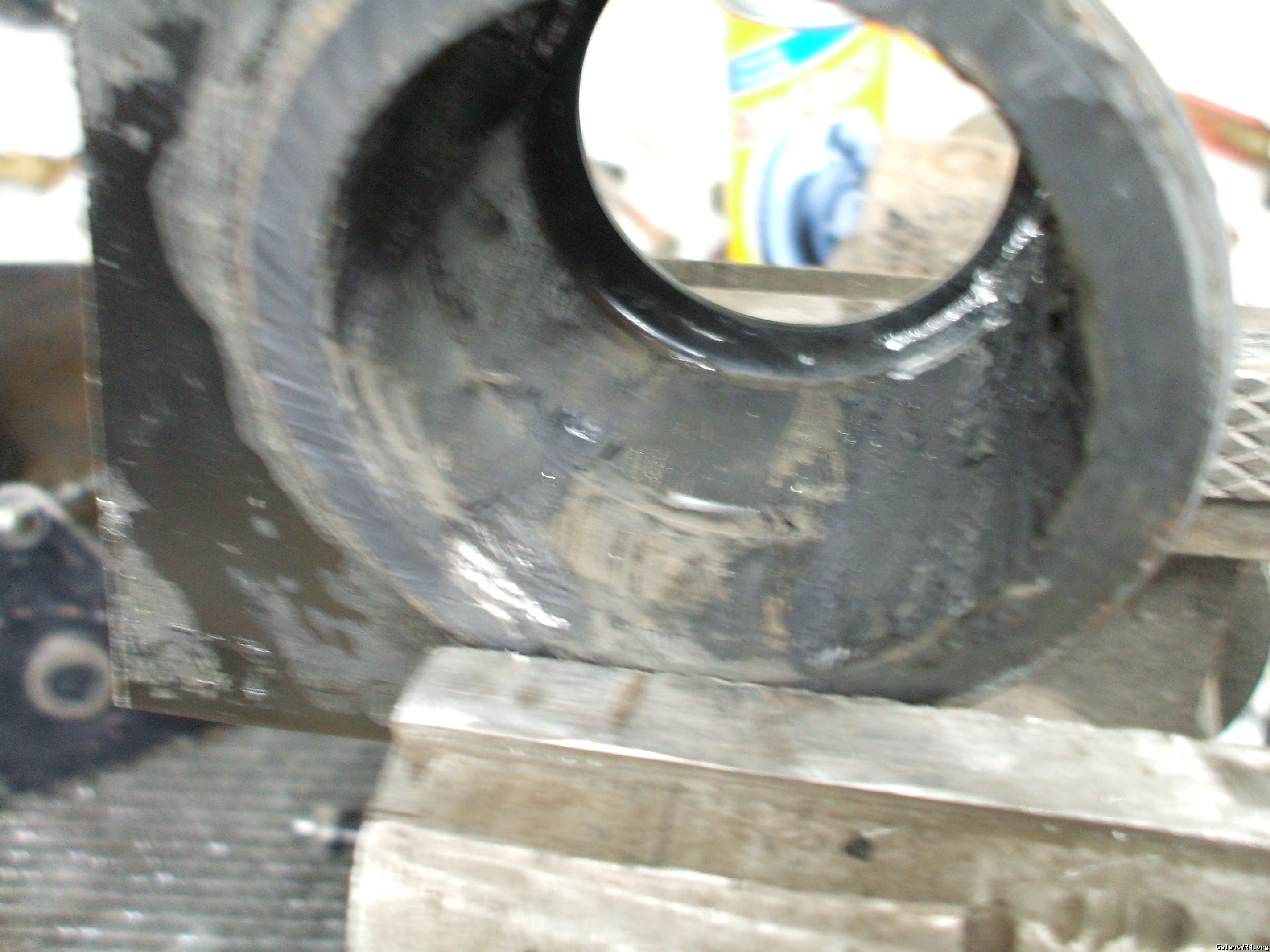 Now for the business end of the post. The removal of the suck factory rubber bushing. I used no special tools nothing that can't be aquired locally for who ever buys these from John.