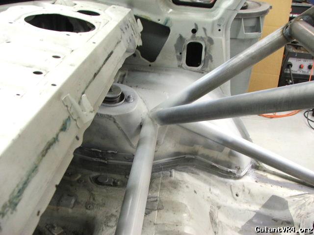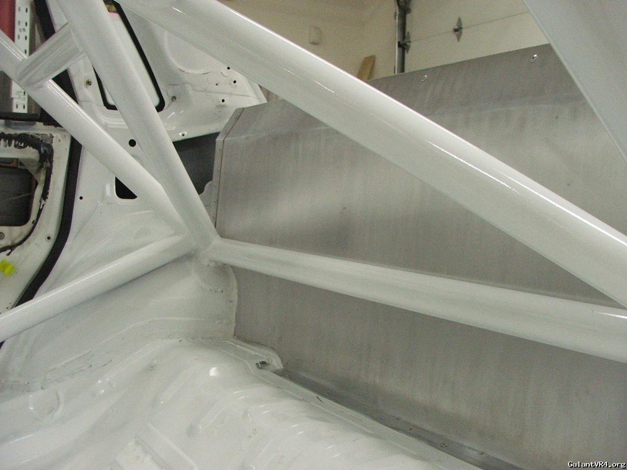 Looks like Larry ran the harnesses all the way back in the car. Very nicely tied together back there, although I can't make out how the cage is tied into the rear turrets in that picture. Looks more like wheel wheel (which is dome-shaped, and likely on the stronger side). The bulkhead between passengers and fuel cell is clean as well.