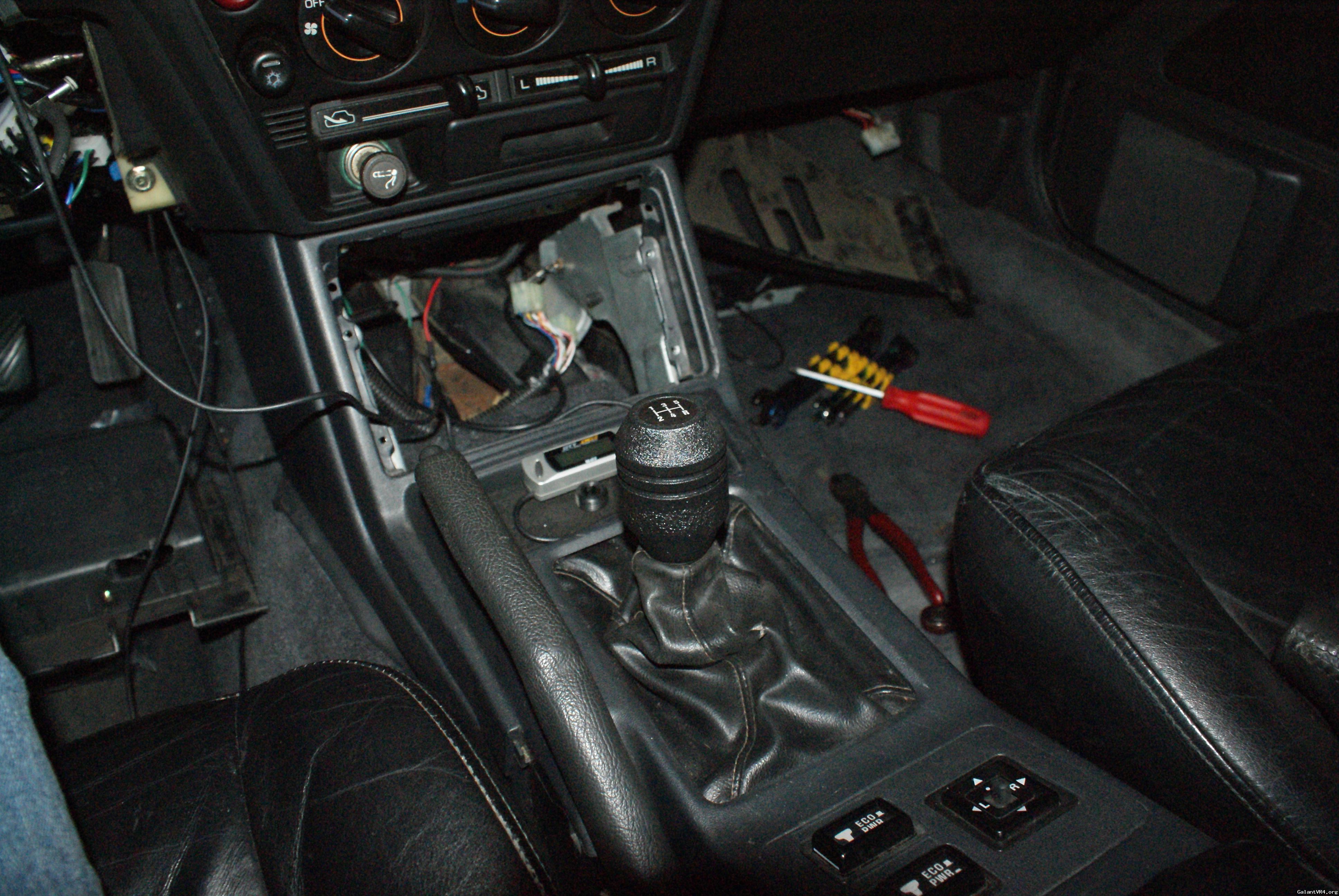 I bought the JBR shift knob. 625 grams of powdercoated goodness. I took photos, and they're not that great, being as my car is unfinished, but here's how it looks in gears 1-5. I'd still like to get my hands on a Grex shift knob, though.
