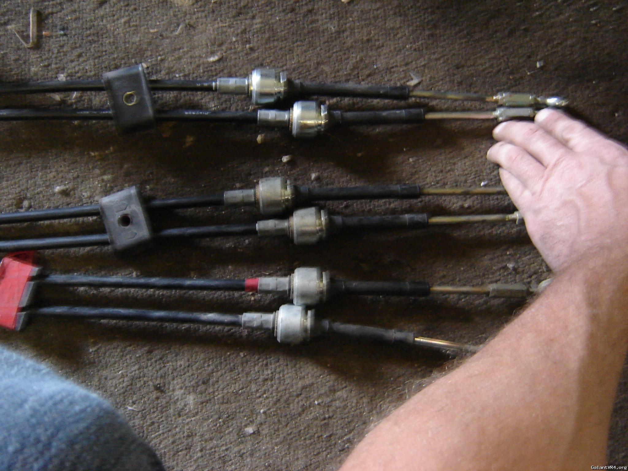 Here are the cables sitting next to eachother. The top ones are from the VR4, the second set down, are from a 1991 and up DSM, and the third set down are from a 1990 DSM. The VR4, and 1991 and up DSM are the same. The difference in length between the 1990, and the vr4/91 up, is roughly 1 3/8 of an inch on only one of the cables. The other cable is the same length.