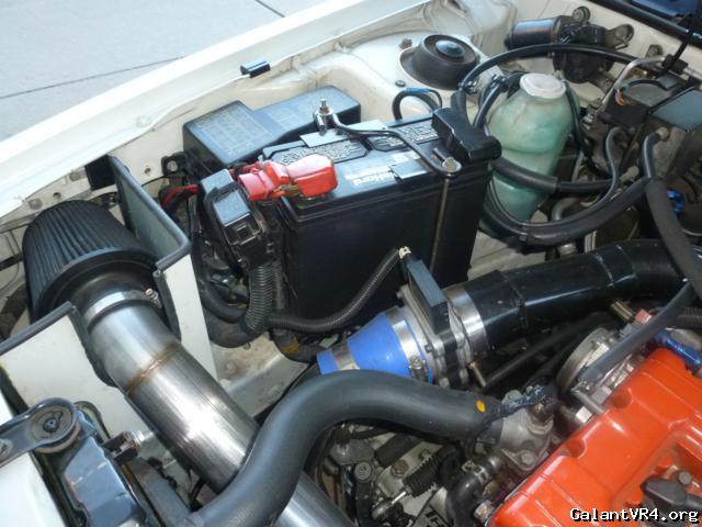 Battery relocated to custom tray in engine bay, air filter in orig. battery location